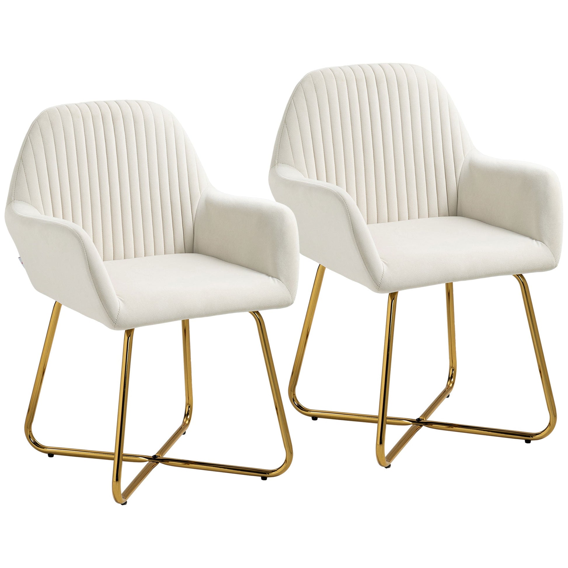 HOMCOM Modern Arm Chair Set of 2 Upholstered Accent Chair with Metal Base for Living Room Cream White