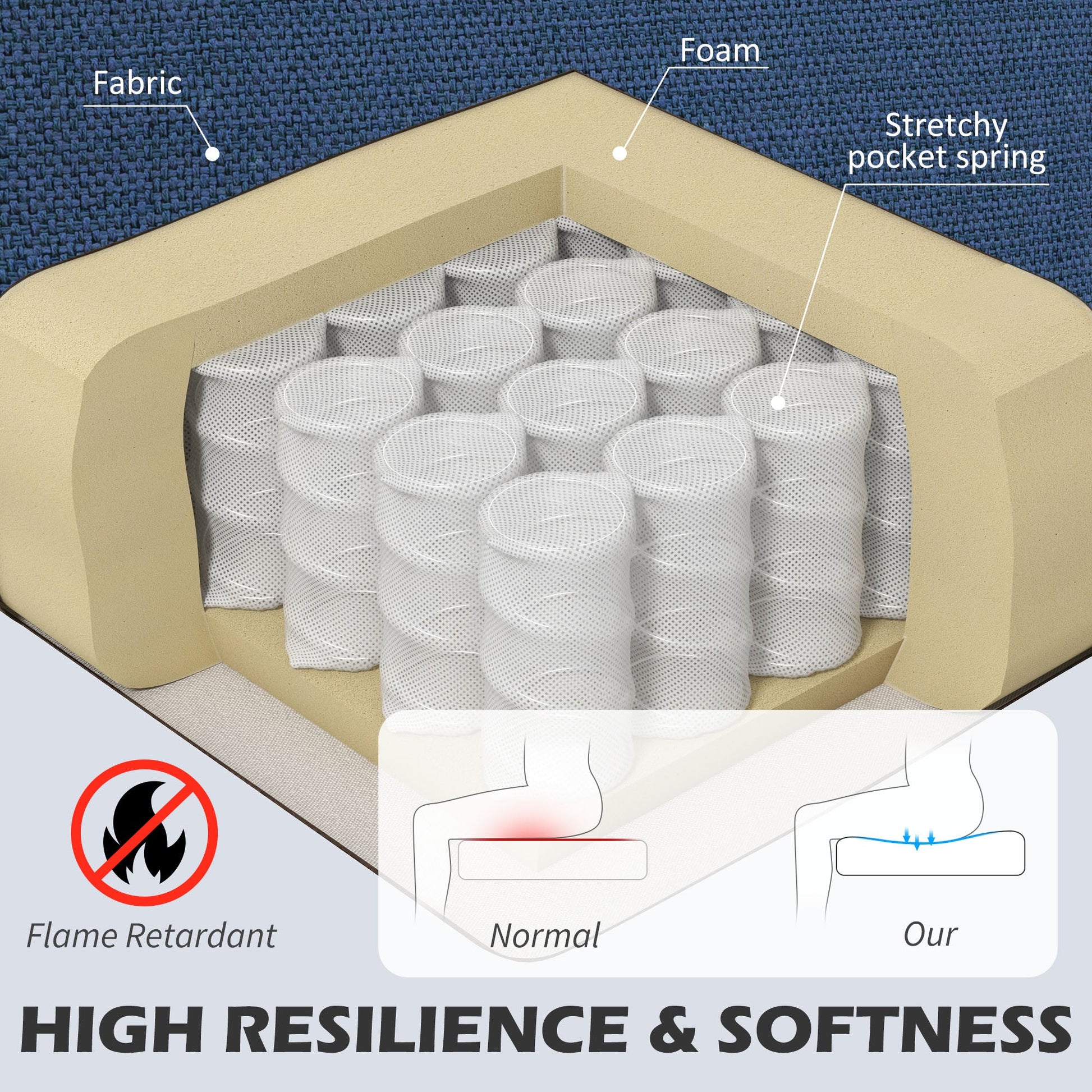 - Stretchy pocket spring with 'S' springs and elastic bands to retain shape