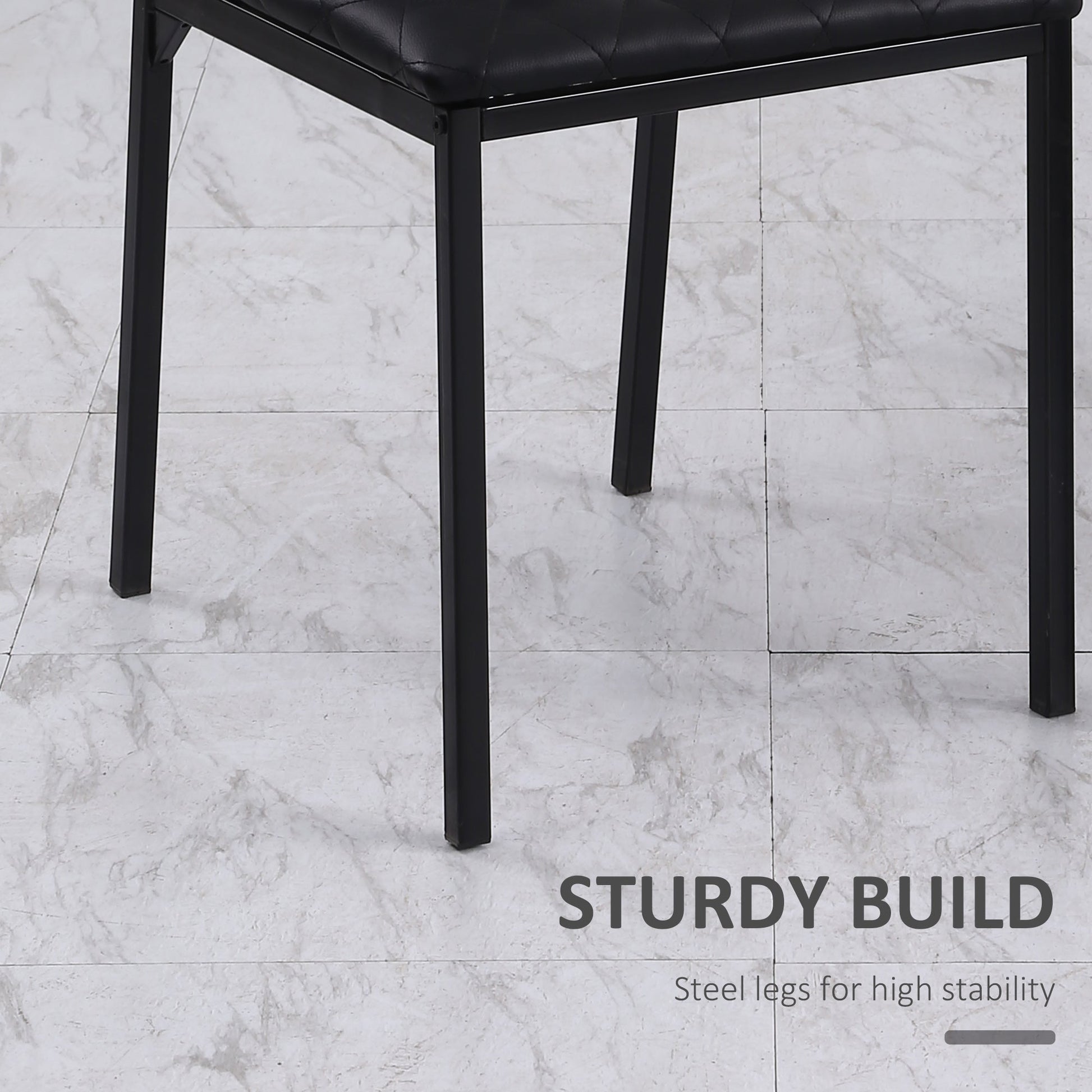 HOMCOM Modern Dining Chairs Upholstered Faux Leather Accent Chairs with Metal Legs for Kitchen, Set of 4, Black