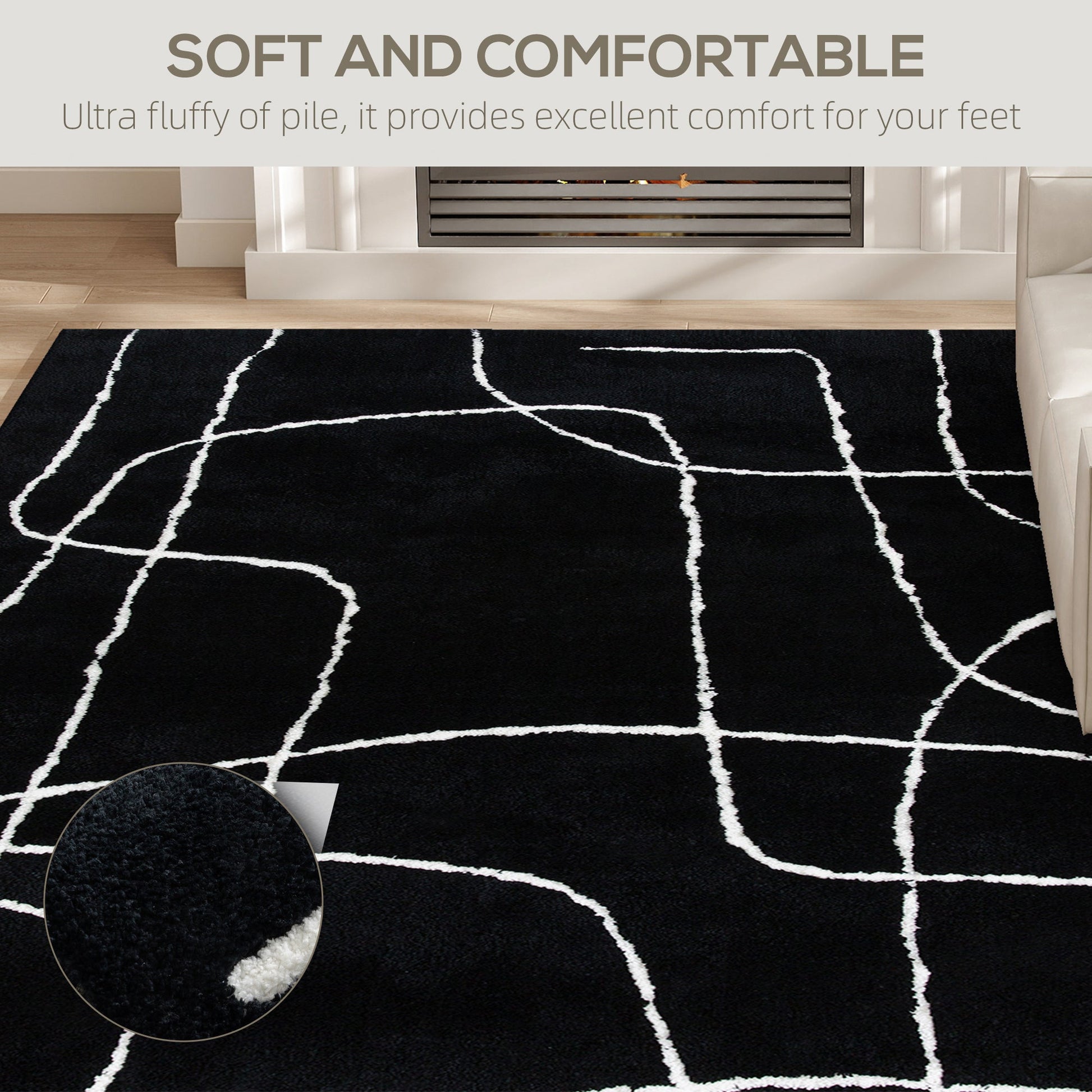 HOMCOM Modern Fluffy Area Rug, Geometric Pattern Washable Rug, Soft High Pile Floor Carpet for Living Room, Bedroom, Dining Room, Home Office, 170 x 120 cm, Black