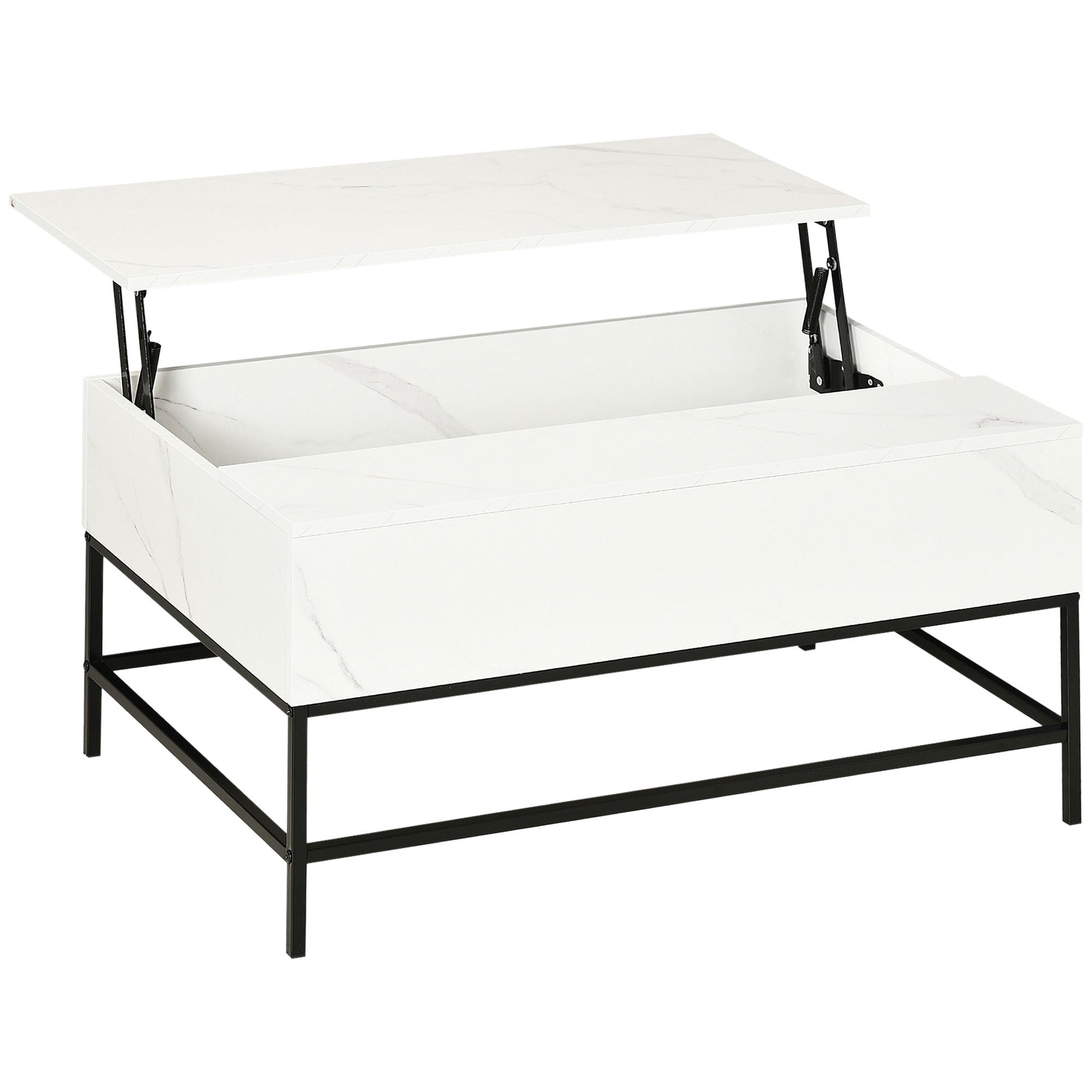 HOMCOM Modern Lifting Coffee Table with Hidden Compartment, Storage Coffee Table for Living Room, Faux Marble White