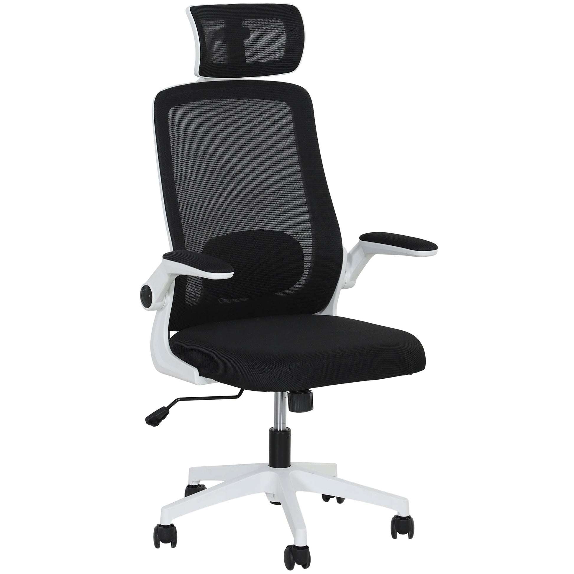 This HOMCOM office chair is a must-have addition to the home office setup. Enjoy customisable support with a headrest, the adjustable seat height and lumbar support - set it to your preferred position. The seat is filled with high-density foam for comfort, with a mesh covered back to keep it aerated all afternoon through. Complete with five wheels to move around easily, whenever you want.
