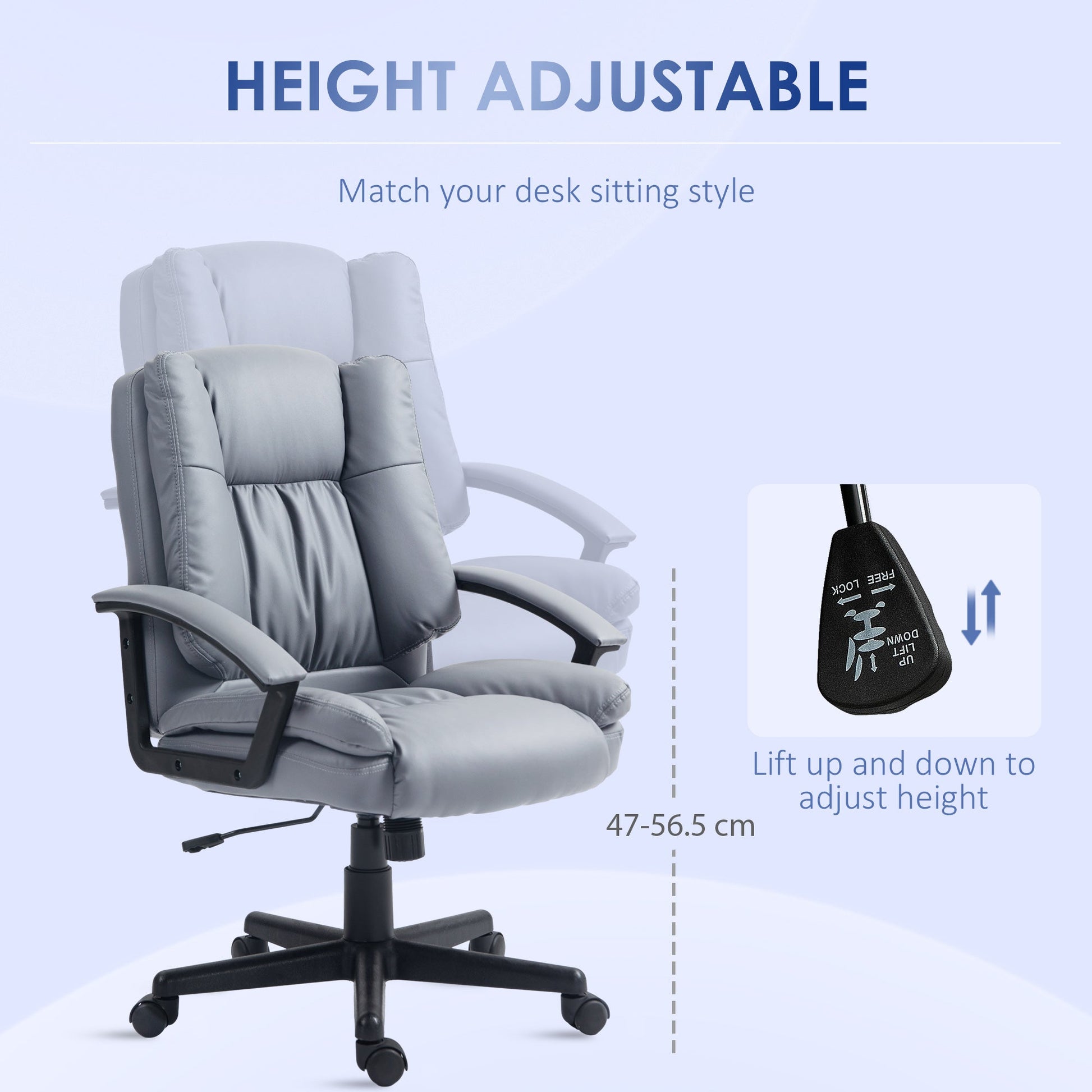 - Adjustable Seat Height: 47-56.5H (cm)