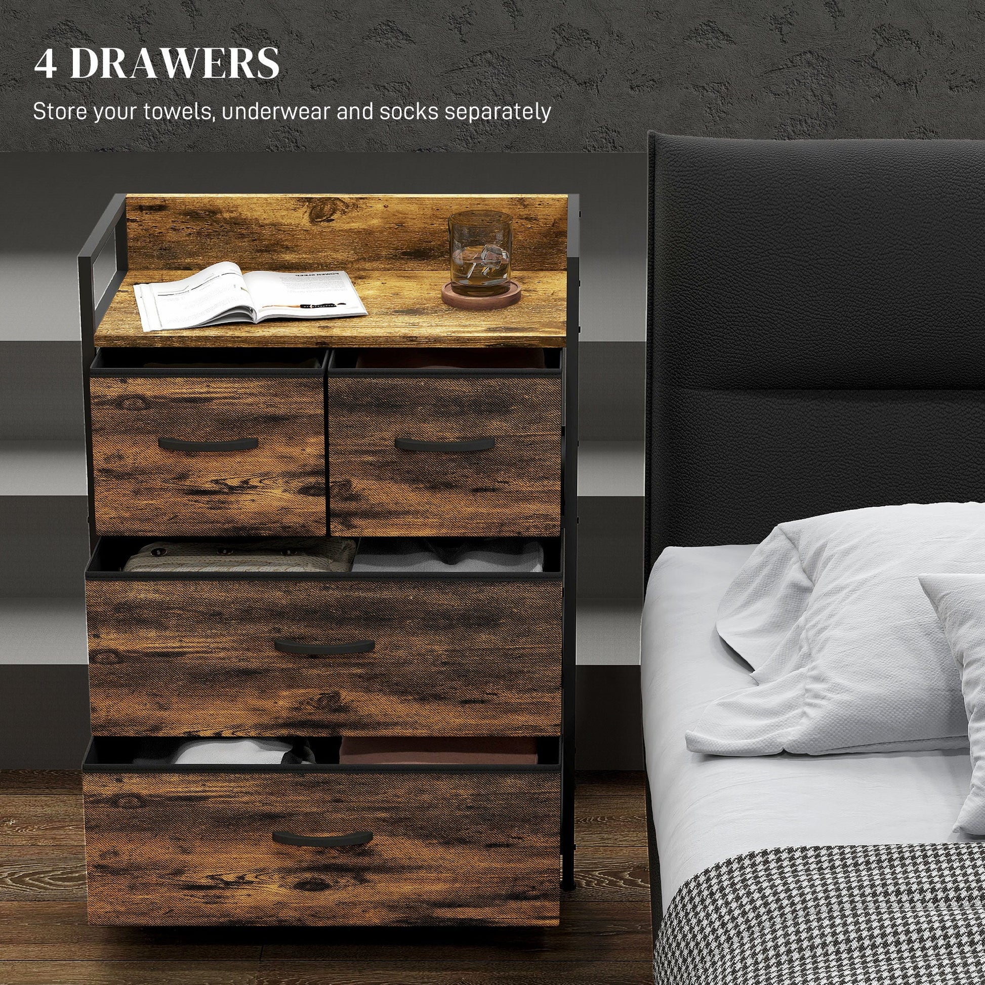 HOMCOM Rustic Chest of Four Fabric Drawers - Rustic Brown