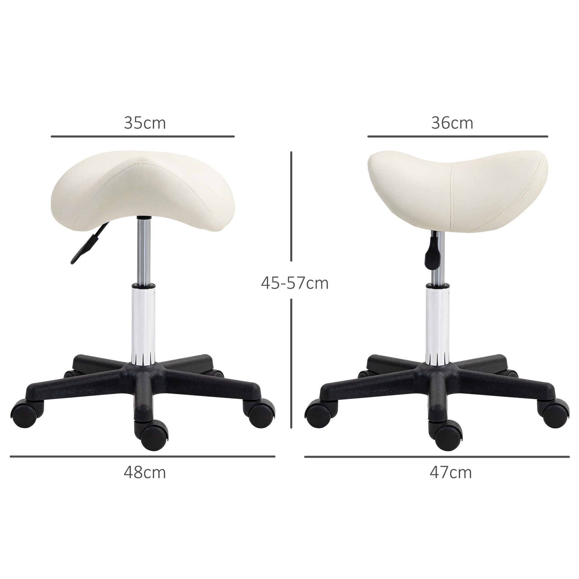 HOMCOM Saddle Stool, PU Leather Adjustable Rolling Salon Chair with Steel Frame for Massage, Spa, Beauty and Tattoo, White