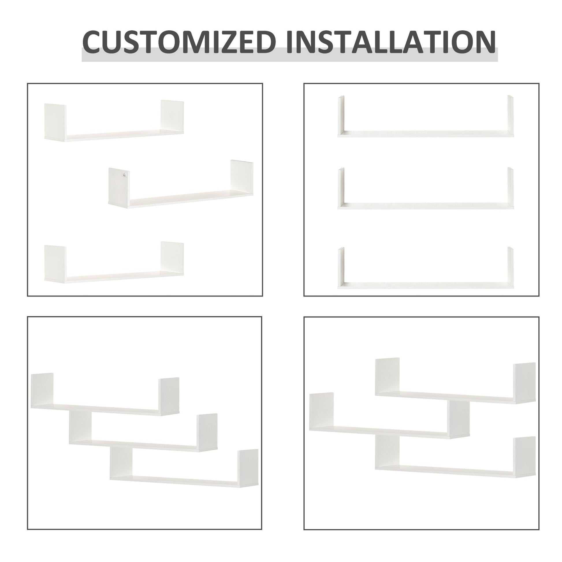 HOMCOM Set of 3 Wooden U-Shaped Floating Shelves Set Wall Mounted Hanging Bookshelf CD DVD Storage Display for Bedroom Living Room Kitchen, White