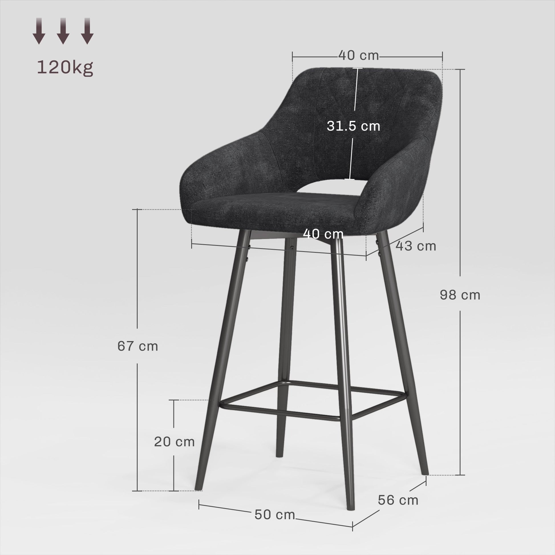 These two perfectly plush bar stools with backs, from HOMCOM, will sprinkle just the right amount of elegance into your home. The tub-shaped seats with high backs and armrests give you plenty of sitting room, wrapped in beautiful velvet-feel upholstery; paired with the padded seats, these stools for kitchen counter are very comfortable. They're fitted with metal bases for strong support - the bottom bars give the lower body a place to hold itself.