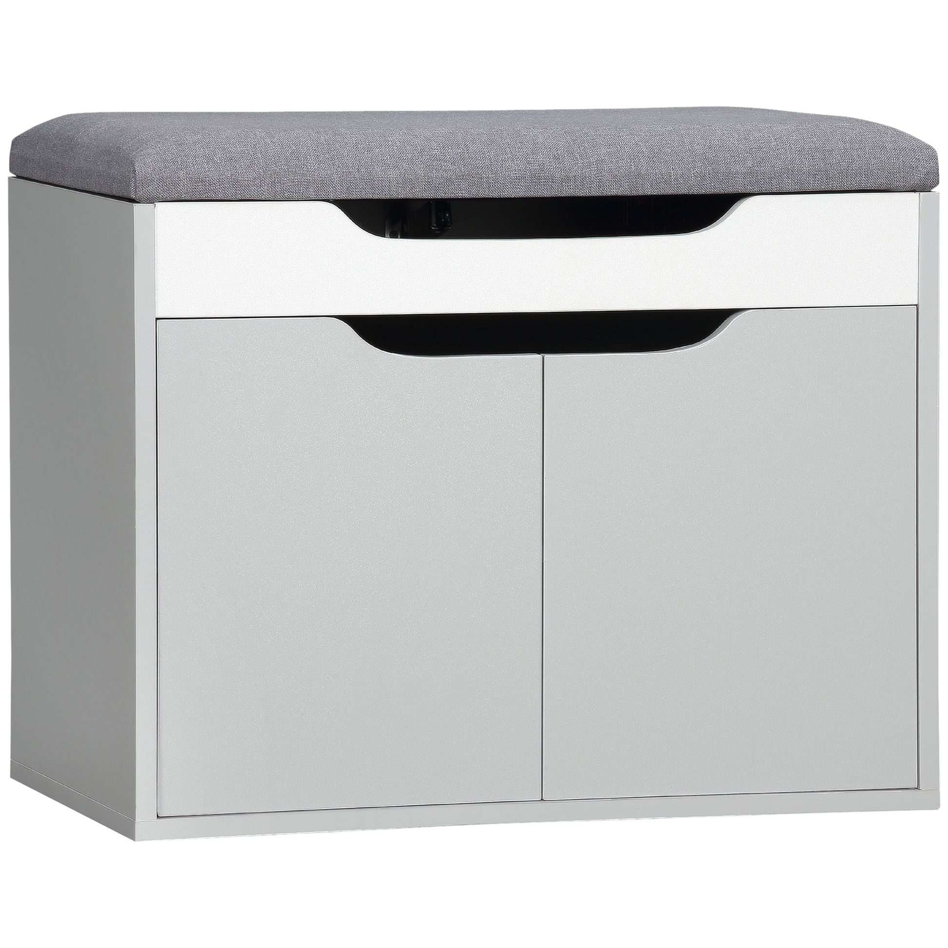 HOMCOM Shoe Bench with Cushion, Modern Storage Bench with Padded Seat, 2-tier Cabinet, Hidden Storage, Adjustable Shelf for Living Room and Entryway, Light Grey
