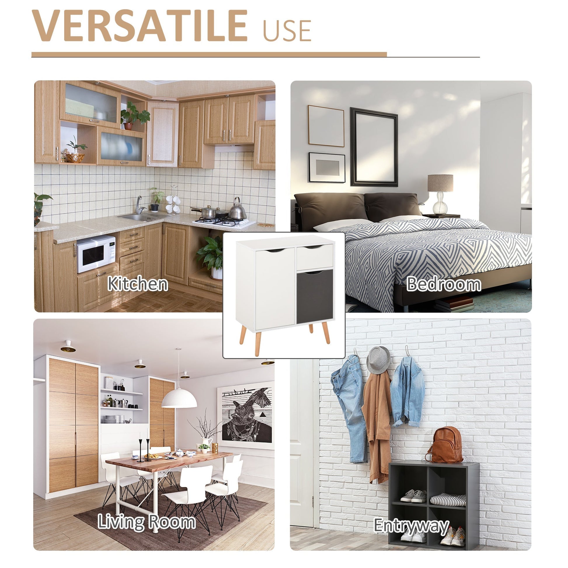 HOMCOM Sideboard Floor Cabinet Storage Cupboard with Drawer and Solid Wood Legs for Bedroom, Living Room, Entryway, Grey