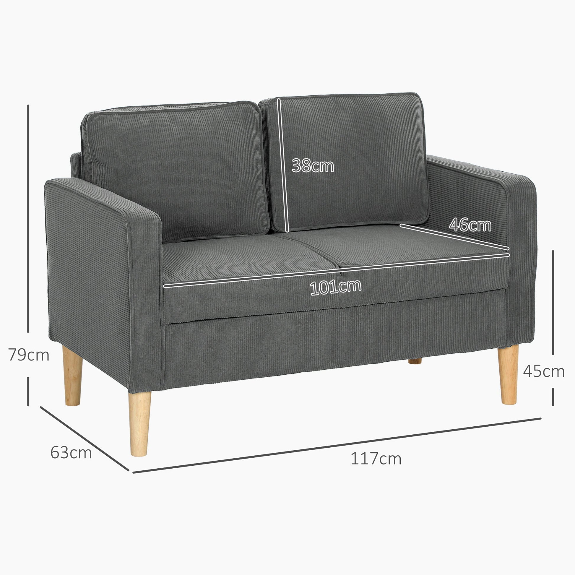 HOMCOM Small Two-Seater Corduroy Sofa - Grey
