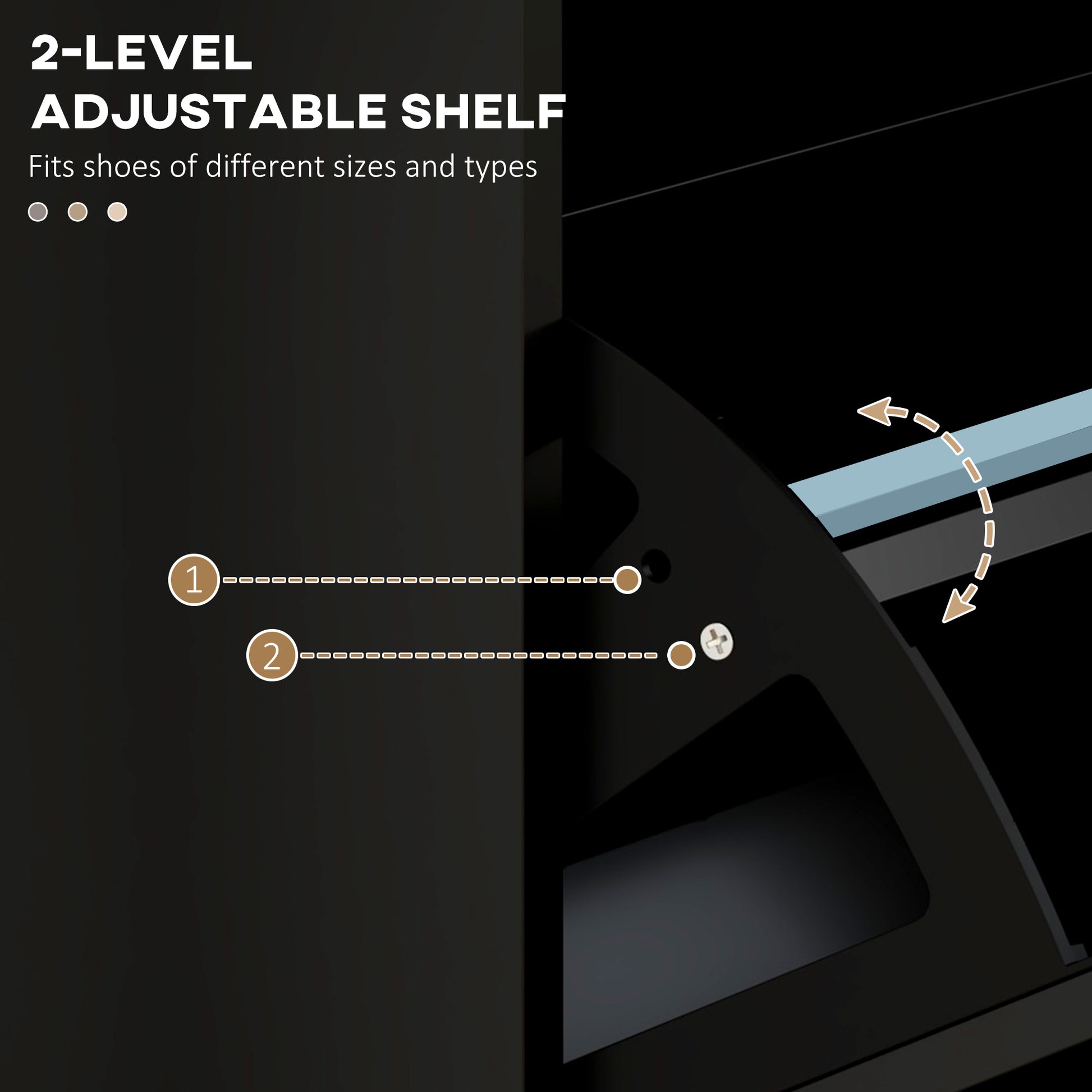 For even the smallest of spaces, welcome in this HOMCOM narrow shoe cabinet. With three flip drawers, it offers space for up to 15 shoe pairs. Each drawer comes with a two-level adjustable shelf to cater for different shoe sizes and types. Made from MDF this is a sturdy piece suitable for everyday use; this minimalistic black slimline shoe storage cabinet comes with anti-tipping straps to securely attach to a wall.