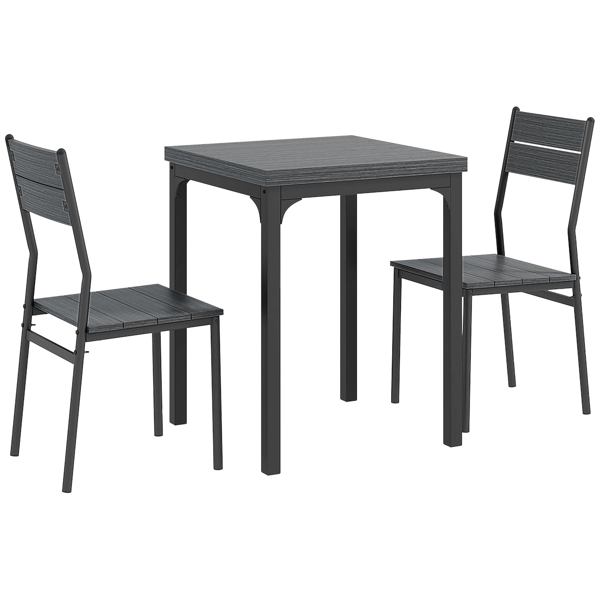 HOMCOM Three-Piece Minimal and Compact Dining Set, Grey Wood Grain
