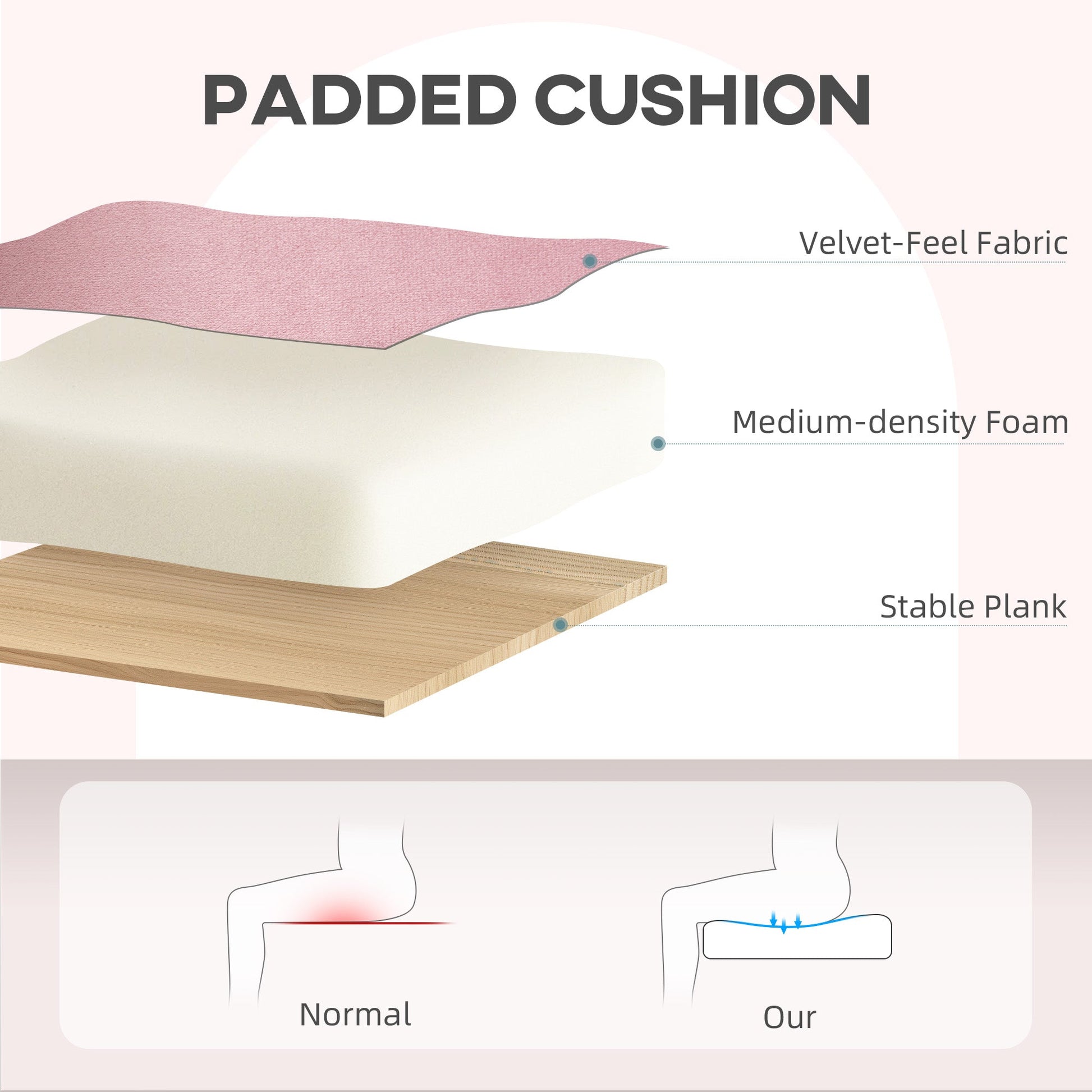 HOMCOM Velvet-Feel Tub Office Chair, with Seat Cushion - Dark Pink