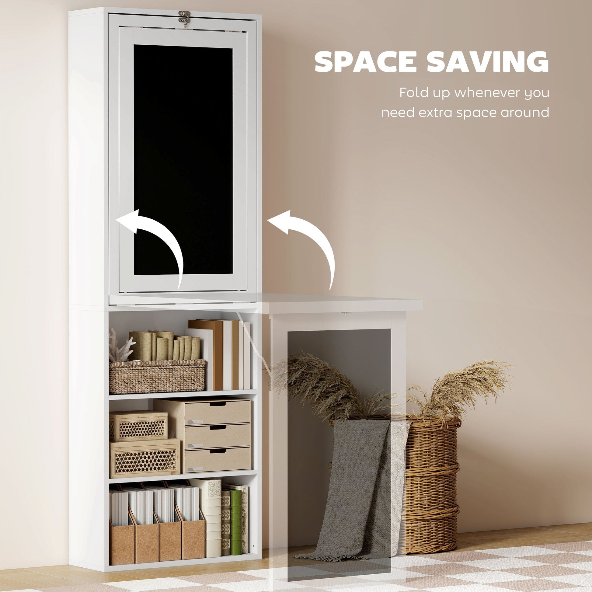Transform your compact living area into a functional and stylish workspace with the HOMCOM fold-out PC desk. Perfect for small apartments or shared spaces, this desk features a clever design with a nine-shelf unit, central desk, and writing board. It maximizes every inch, keeping essentials organized and thoughts clear. Ideal for those who value efficiency and elegance, this desk seamlessly blends into any decor, offering a sophisticated solution for modern living without compromising on space.
