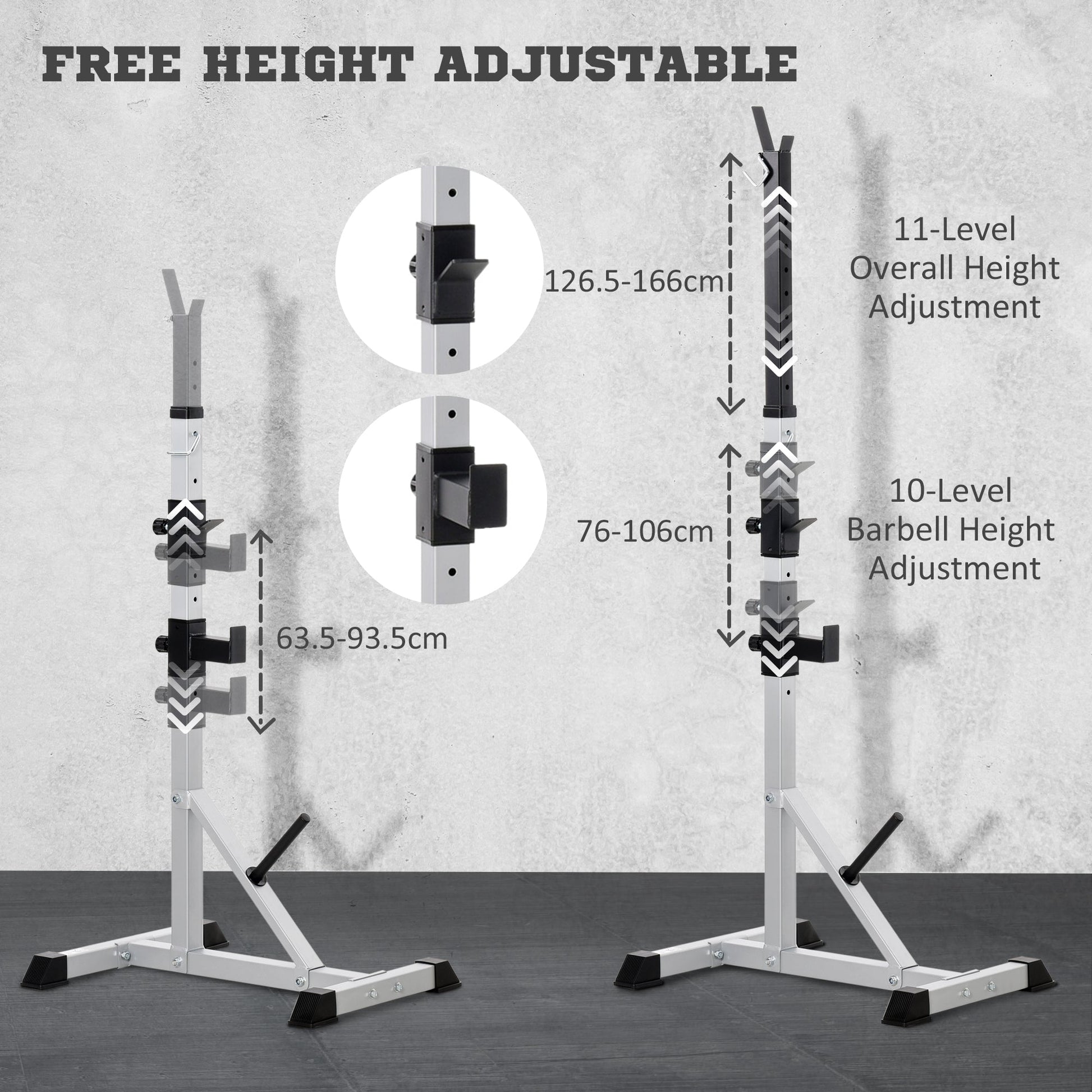 HOMCOM Weights Bar Barbell Rack Squat Stand Adjustable Portable Weight Lifting Max Load 200kg, Suitable For Home Gym Training Work Out