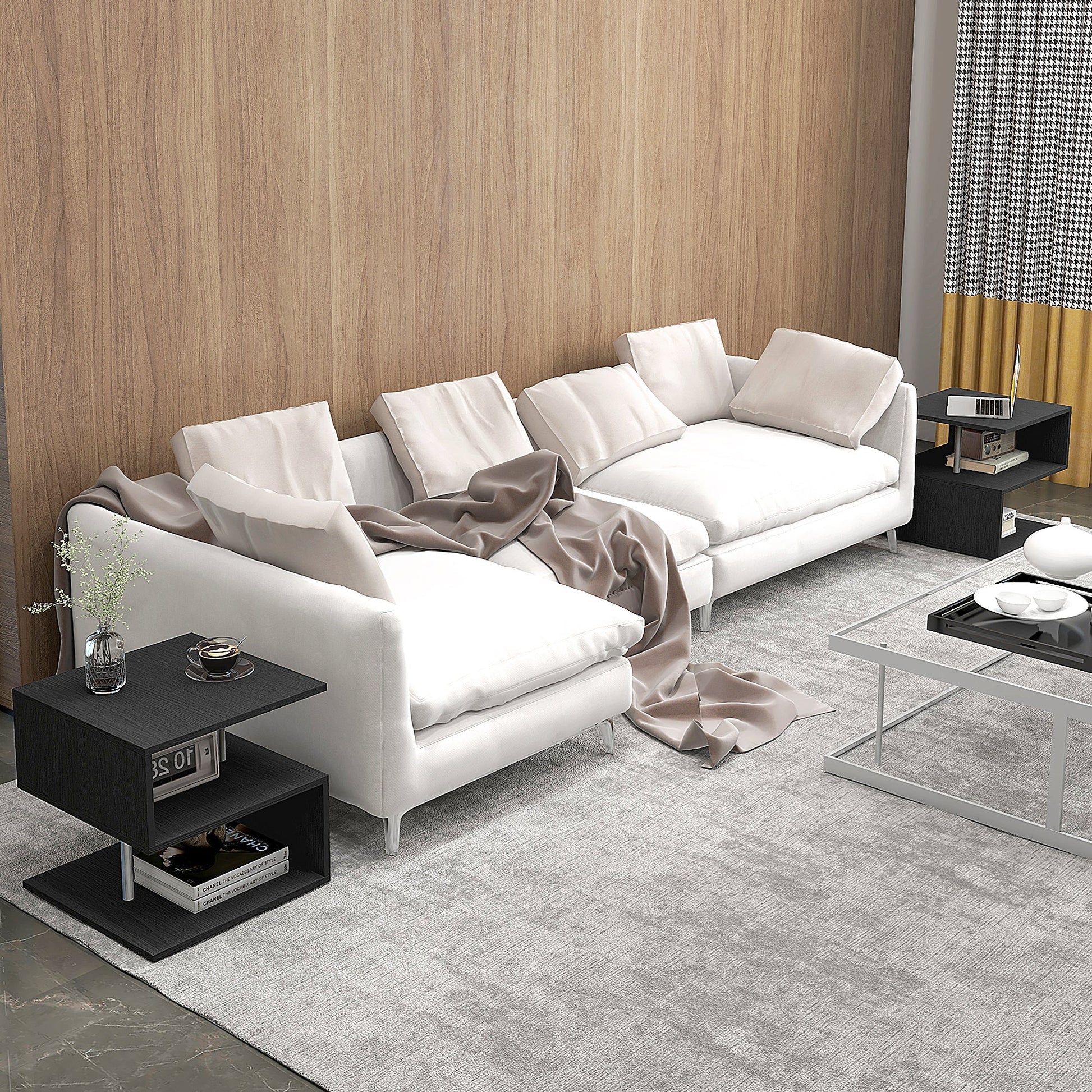 HOMCOM Wooden S Shape Cube Coffee Table 2 Tier Storage Shelves Organiser Office Bookcase Living Room End Desk Stand Display Set of 2 (Black)