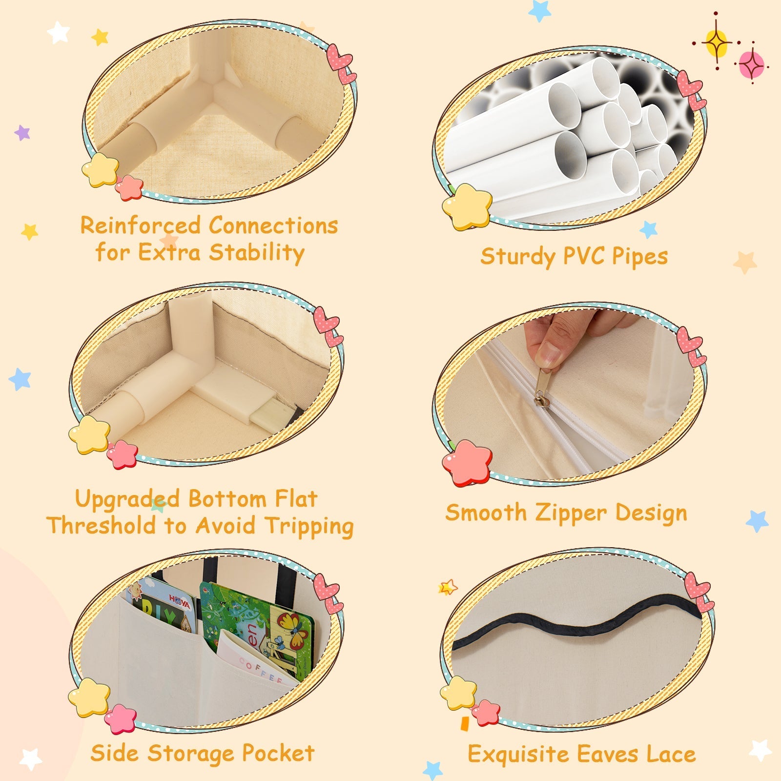 Indoor Kids Play Tent with Star Lights for Children Boys Girls Gift-Beige