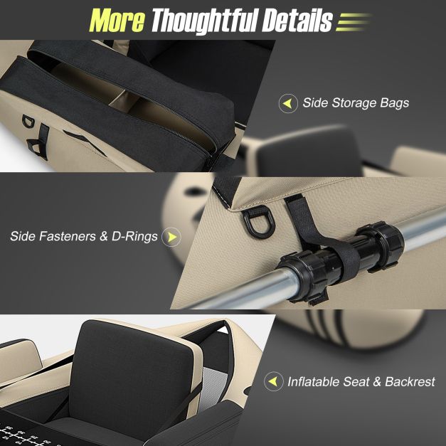 Inflatable Fishing Float Tube with Pump, Paddle, Storage Pockets-Beige