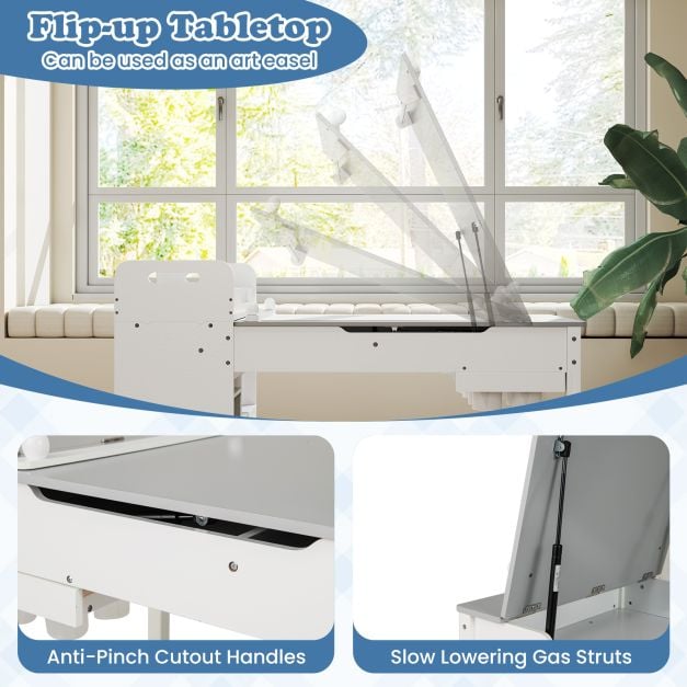 This kids art table and 2 chairs set with paper roll and storage shelves-grey is designed to keep your space organised while delivering reliable everyday functionality and a clean, modern look.