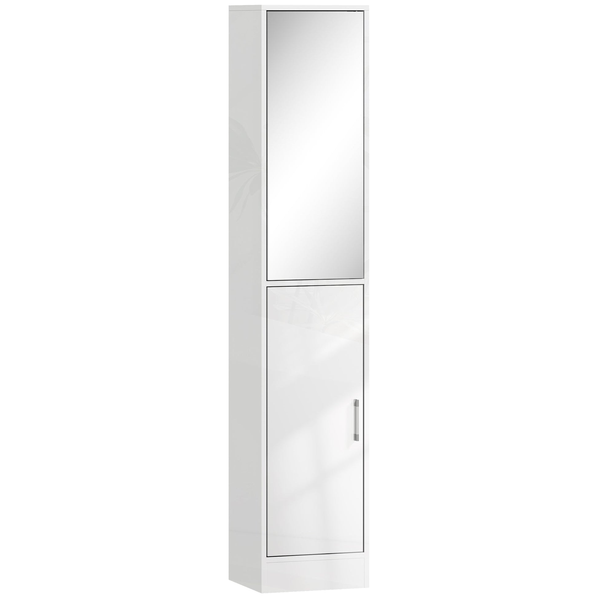 kleankin Tall Bathroom Cabinet with Mirror and Adjustable Shelf - High Gloss White