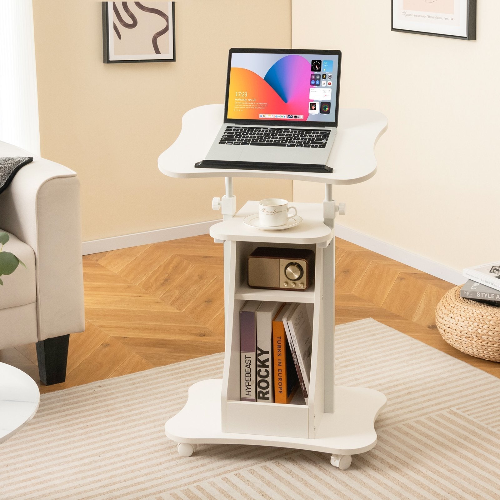 Laptop Cart Height Adjustable with Wheels-White