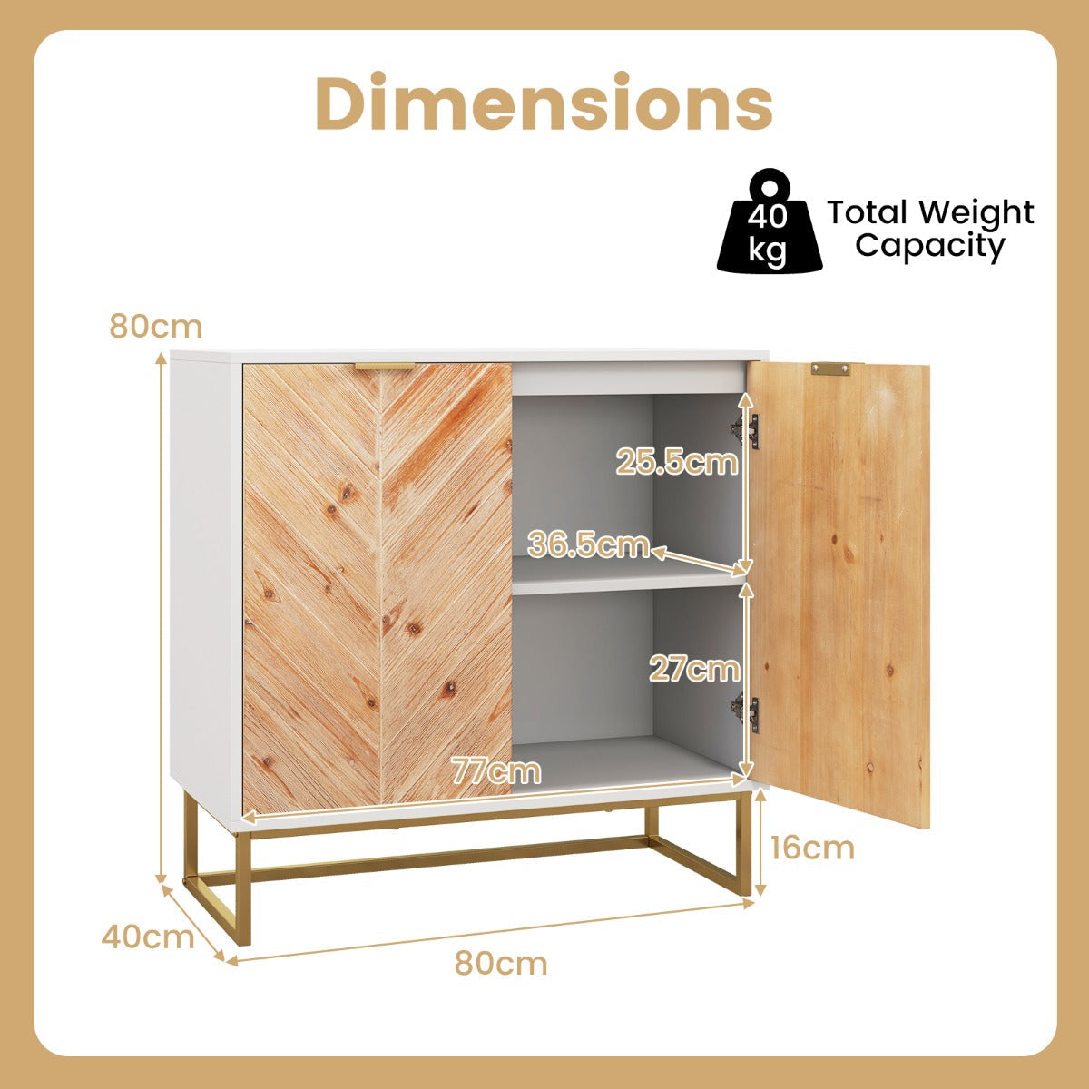 Colour: White Materials: MDF, Fir Wood, Metal Overall Dimensions: 80 x 40 x 80 cm (L x W x H) Height off the Ground: 16 cm Total Weight Capacity: 40 kg Net Weight: 22 kg Package includes: 1 x Sideboard Buffet Cabinet 1 x Instruction Manual