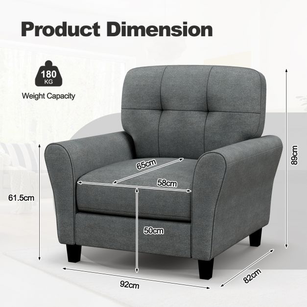 - 1 × Modern Upholstered Accent Chair with Rubber Wood Legs-Gray