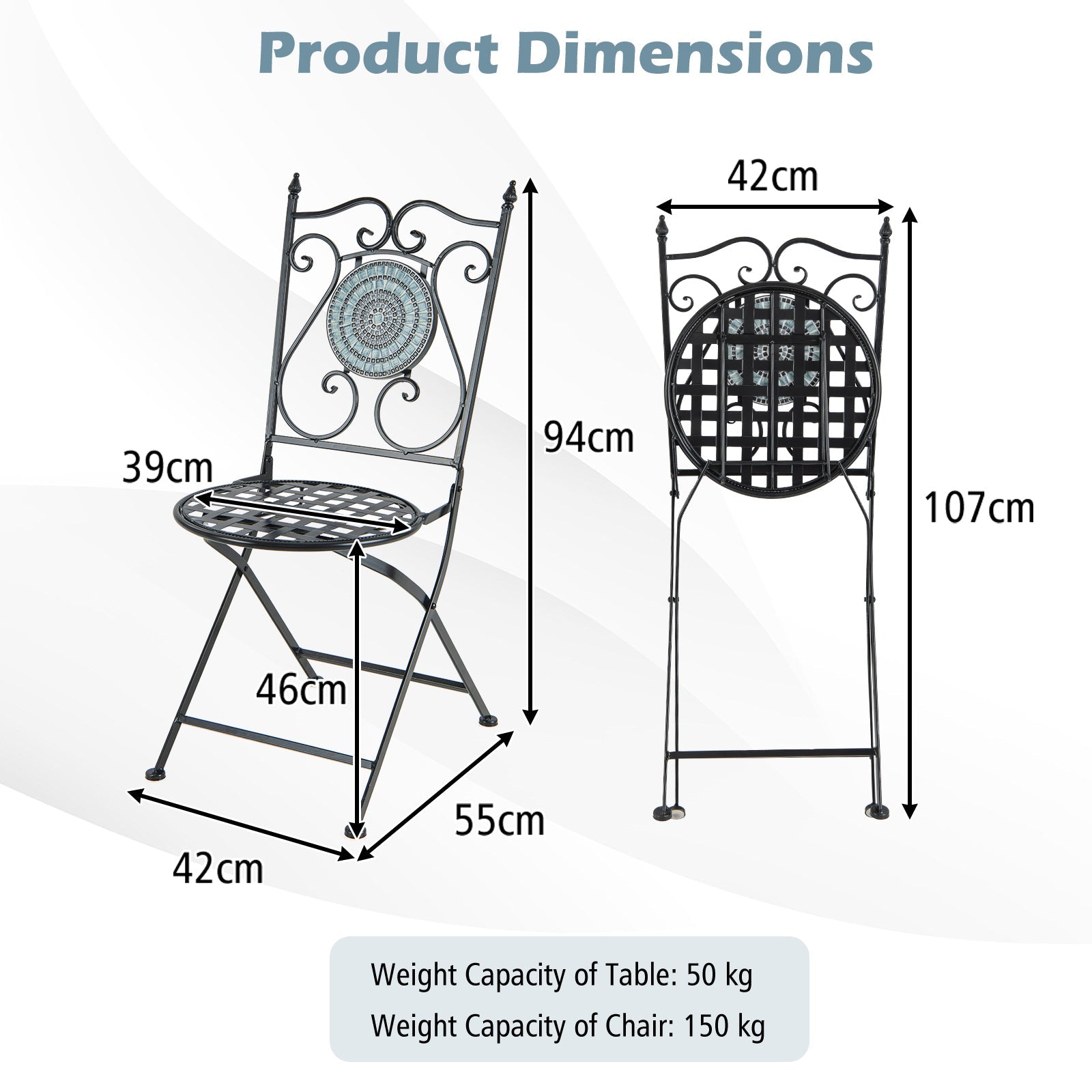 - 1 × Mosaic Chairs Set of 2 Patio Metal Folding Chair with Decorative Backrest