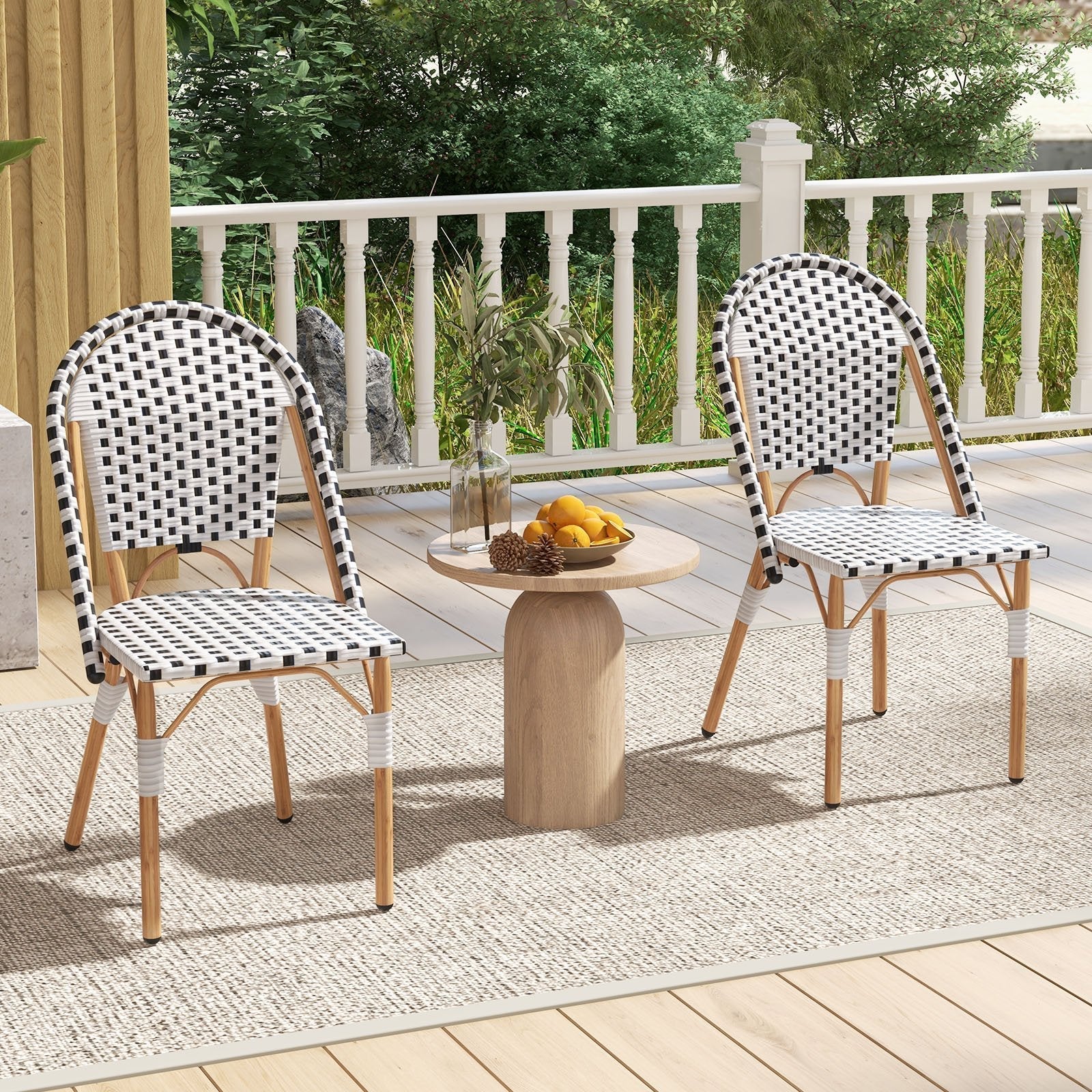 Outdoor Armless French Bistro Chair Set of 2-Black & White