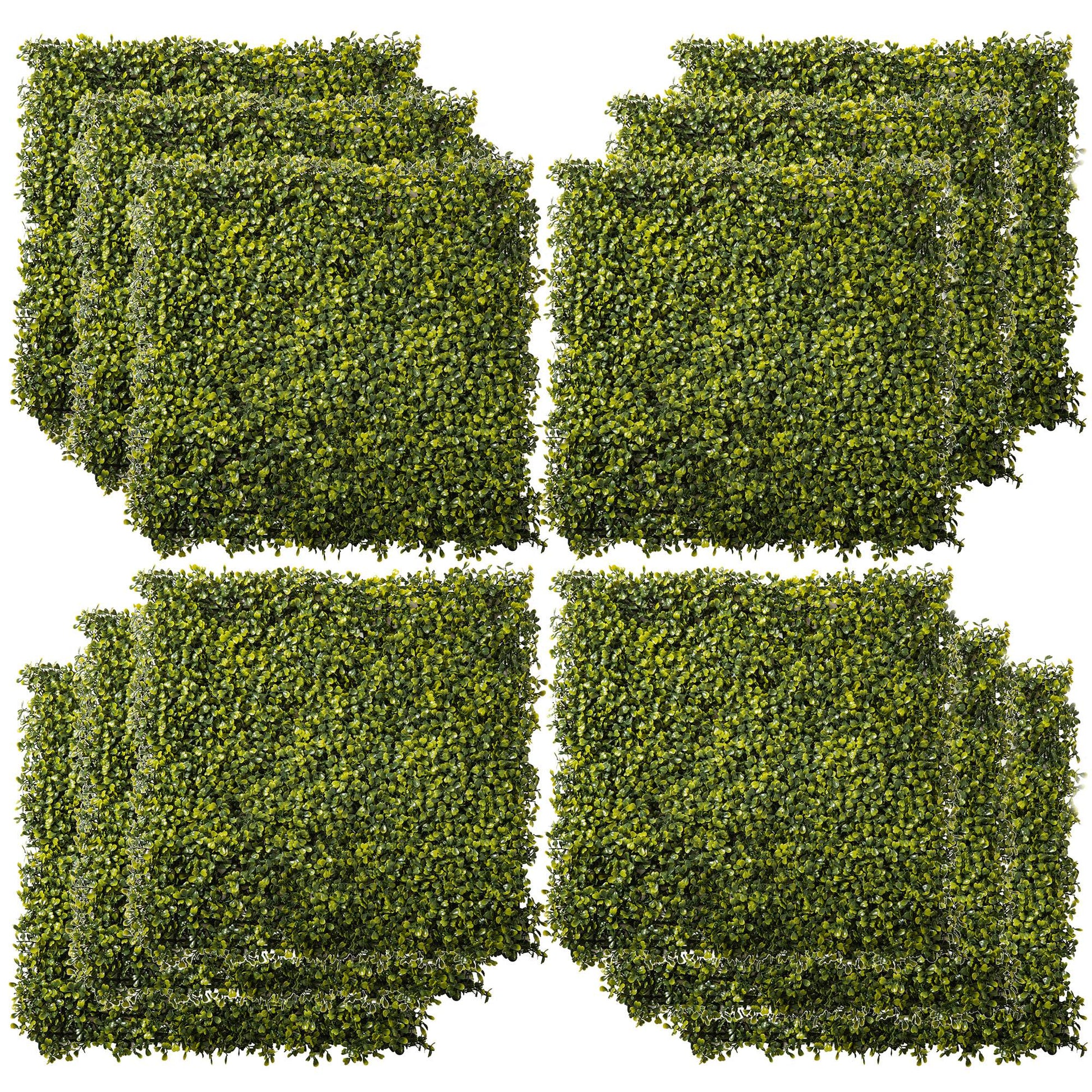 Outsunny 12PCS Artificial Boxwood Wall Panels 50cm x 50cm Grass Privacy Fence Screen Faux Hedge Greenery Backdrop Encrypted Milan Grass for Home Garden Backyard Balcony