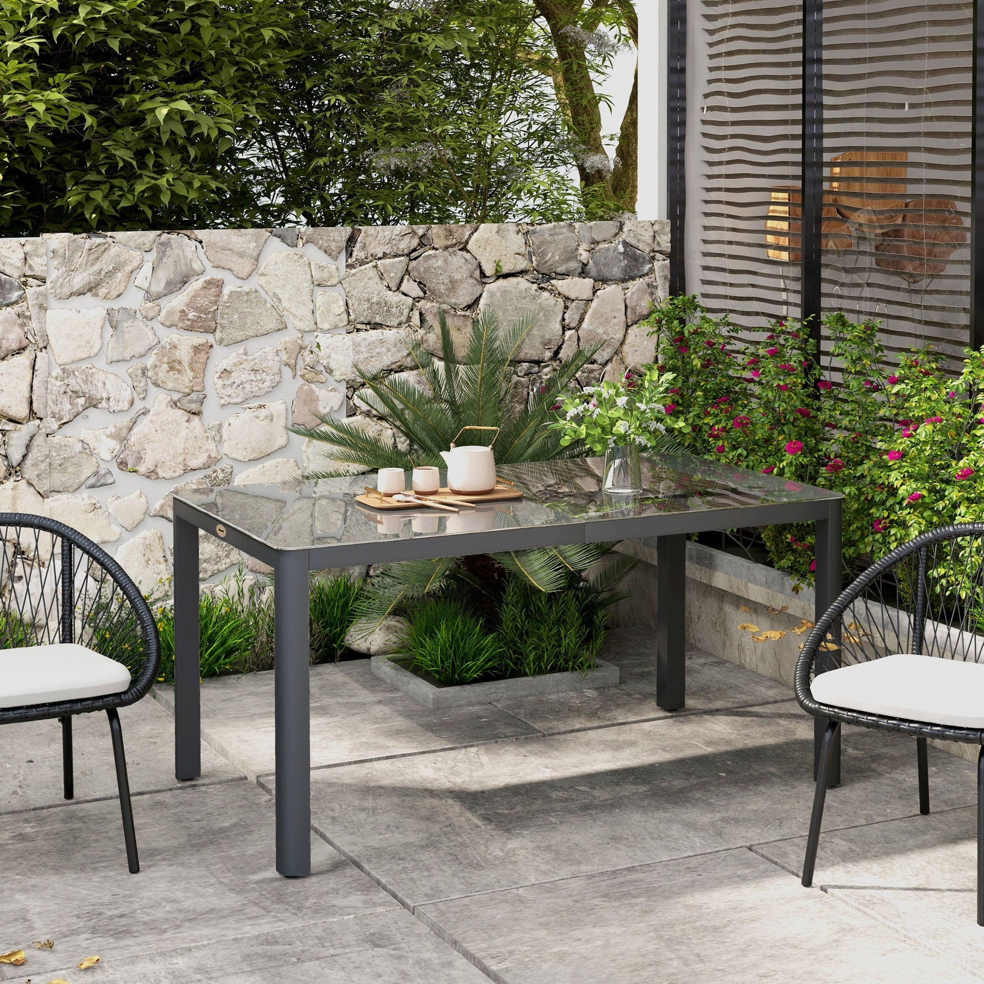 Outsunny 150cm x 88cm Aluminium Table, with Glass Tabletop - Grey