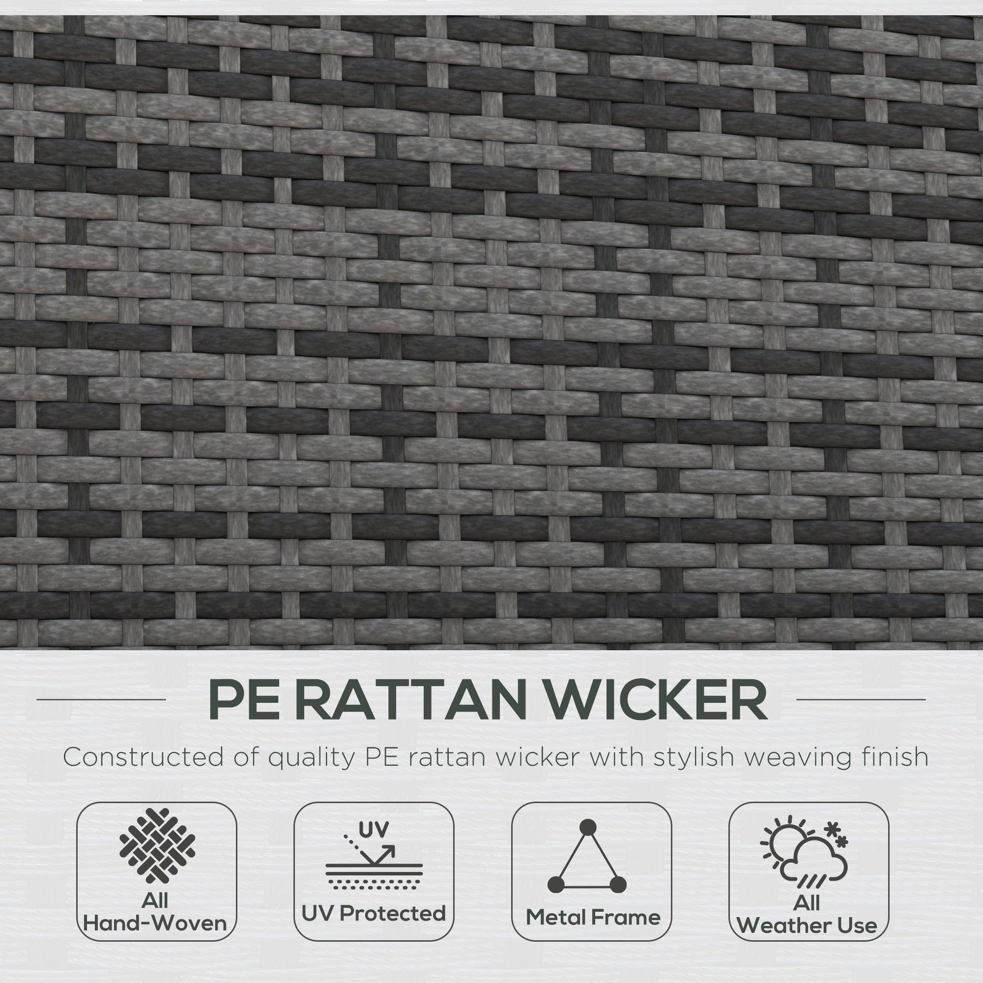 Outsunny 2 Seater Rattan Day Bed w/ Fire Retardant Cushions Grey