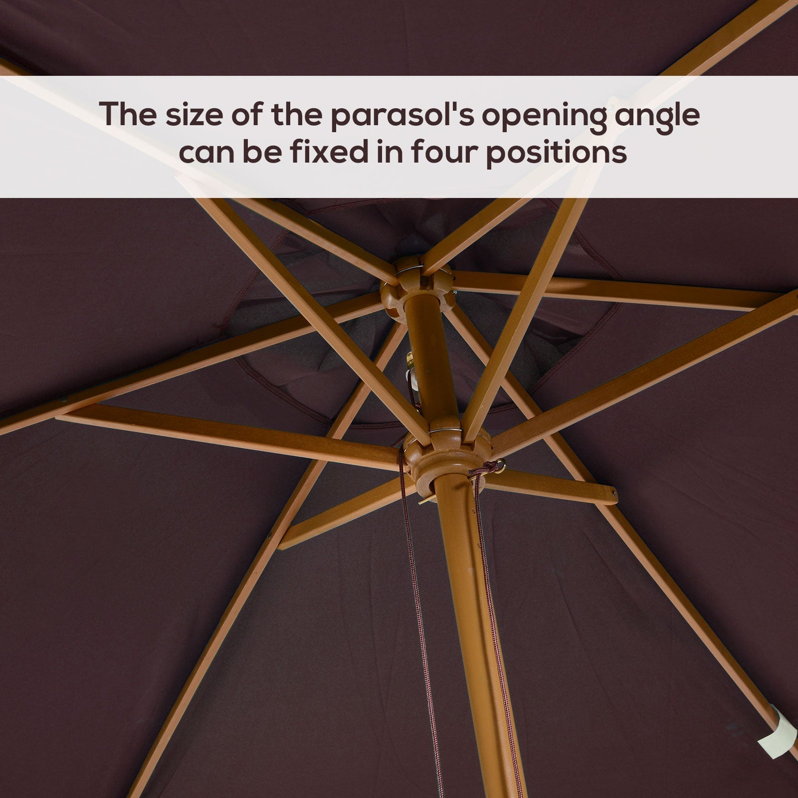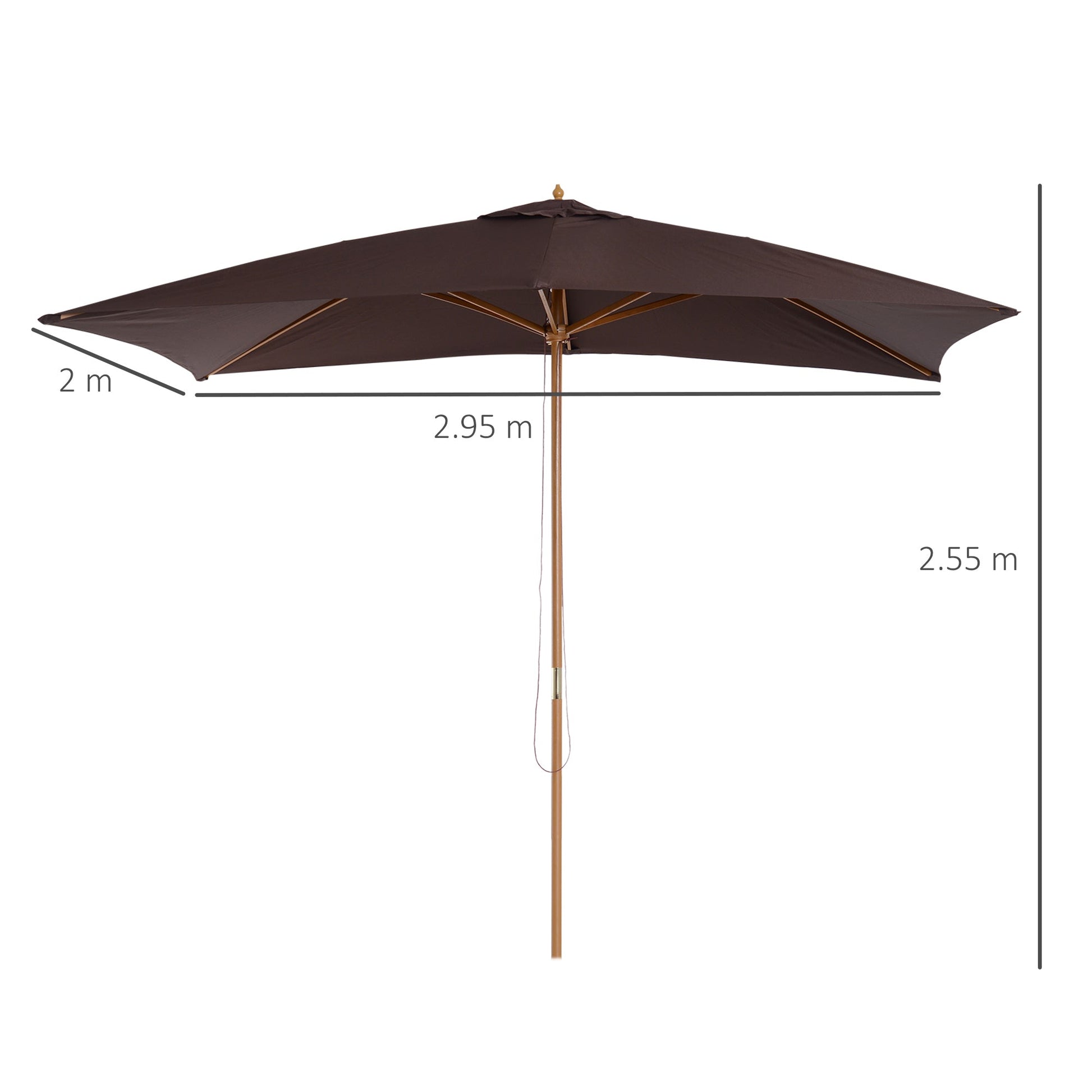 Outsunny 2 x 3m Wooden Garden Parasol Umbrella Outdoor Sun Shade Canopy, Dark Coffee
