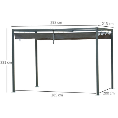 Outsunny 3 x 2m Metal Outdoor Pergola with Retractable Roof, Outdoor Gazebo Canopy Shelter with Drainage Holes for Garden, Patio, Lawn, Grey
