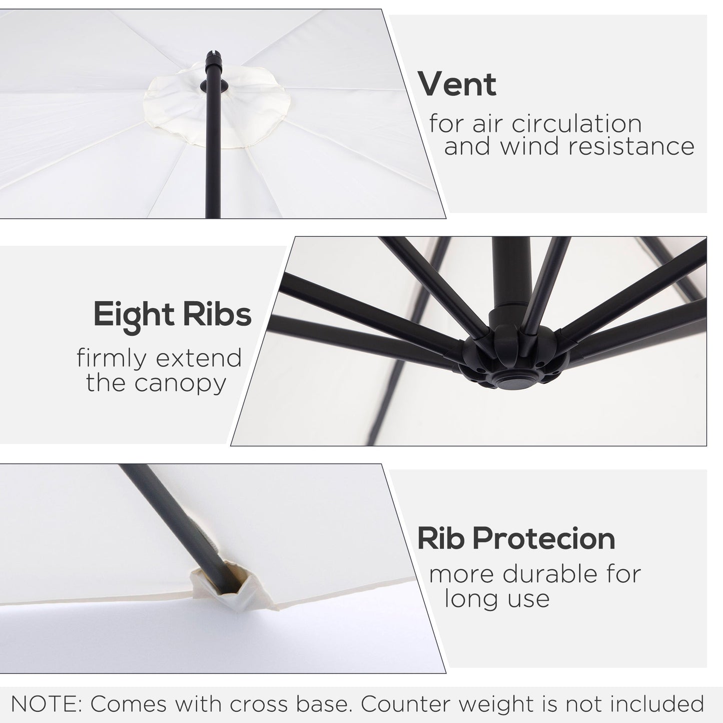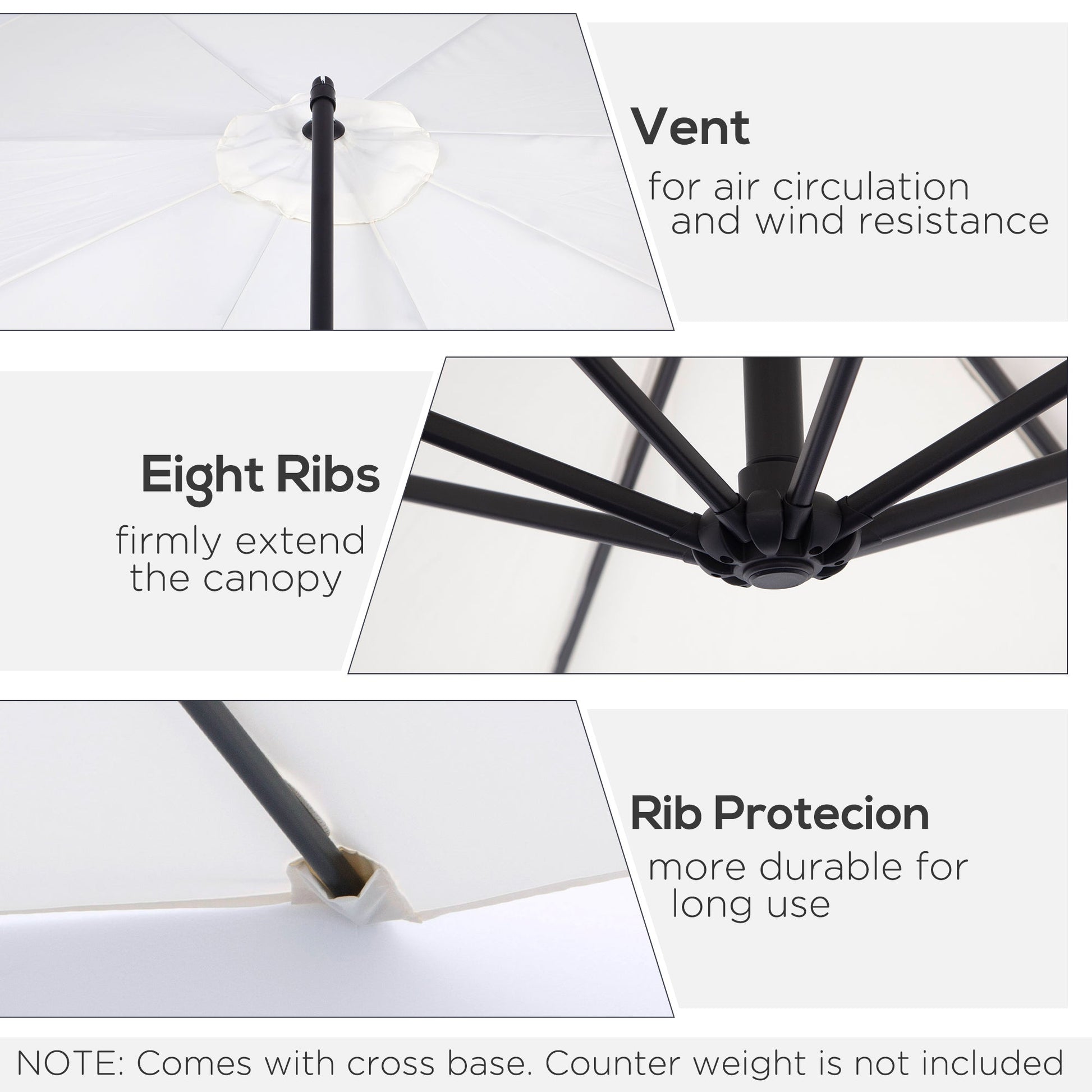 - Heavy duty thicken steel pole and 8 ribs with powder coated finish, support this large umbrella