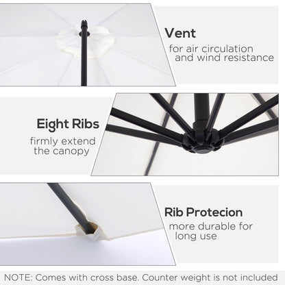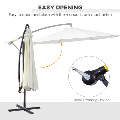 Outsunny 3m Banana Umbrella Parasol, Offset Cantilever Parasol Umbrella with Cross Base, Cream White