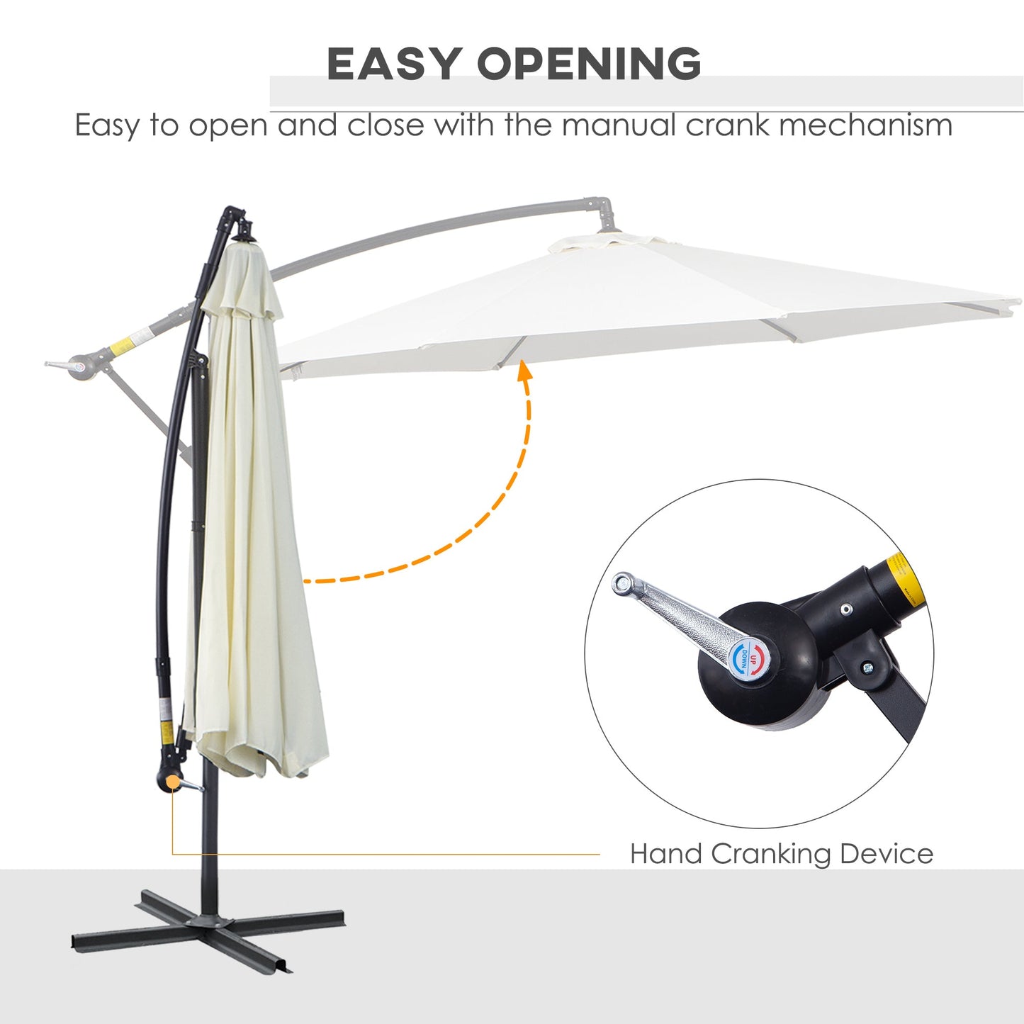 - Umbrella easily opens and closes with crank lifting system