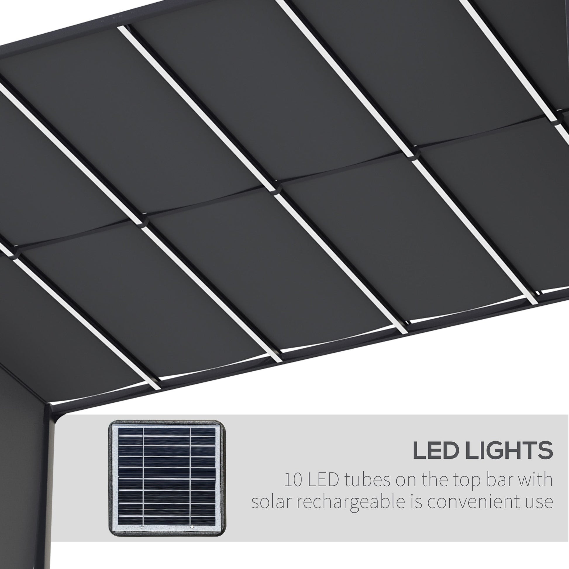 Outsunny 3(m) x 4m Metal Pergola with LED Lights, Outdoor Garden Pergola with Sliding Roof, Solar Powered, for BBQ, Lawn, Dark Grey