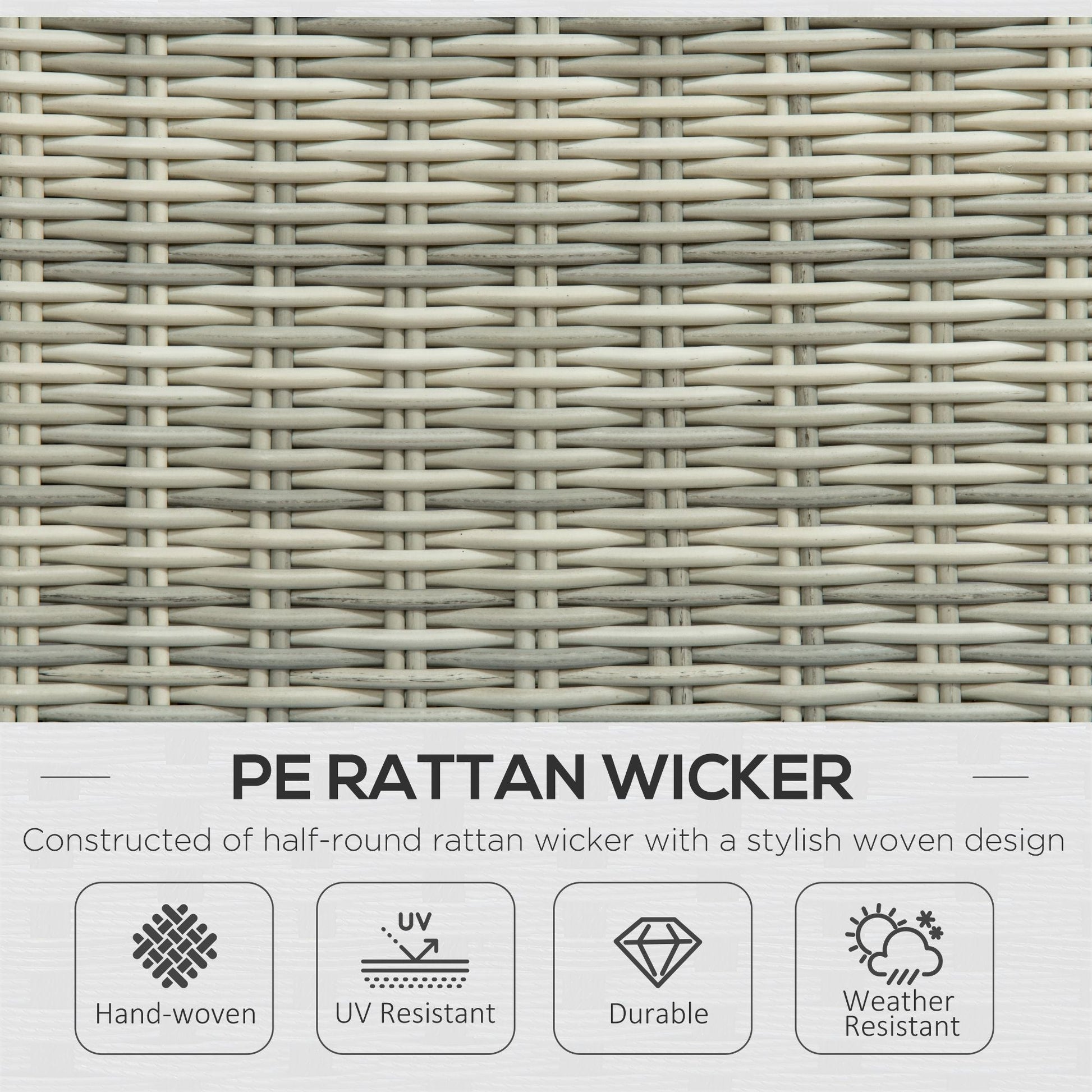 Outsunny 5 Pieces Rattan Bistro Set with Adjustable Back, Reclining Wicker Balcony Furniture with Cushions, Glass Top Coffee Table and Footstools, Outdoor Table and Chairs, Grey