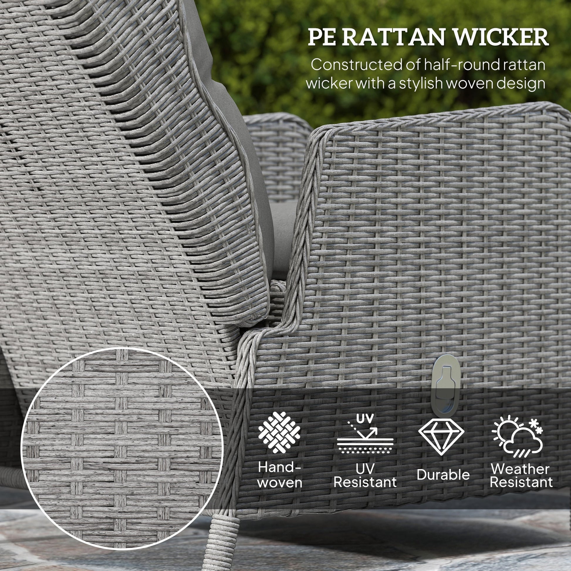 - Made from half-round PE rattan wicker and lightweight aluminium frame for long-term use
