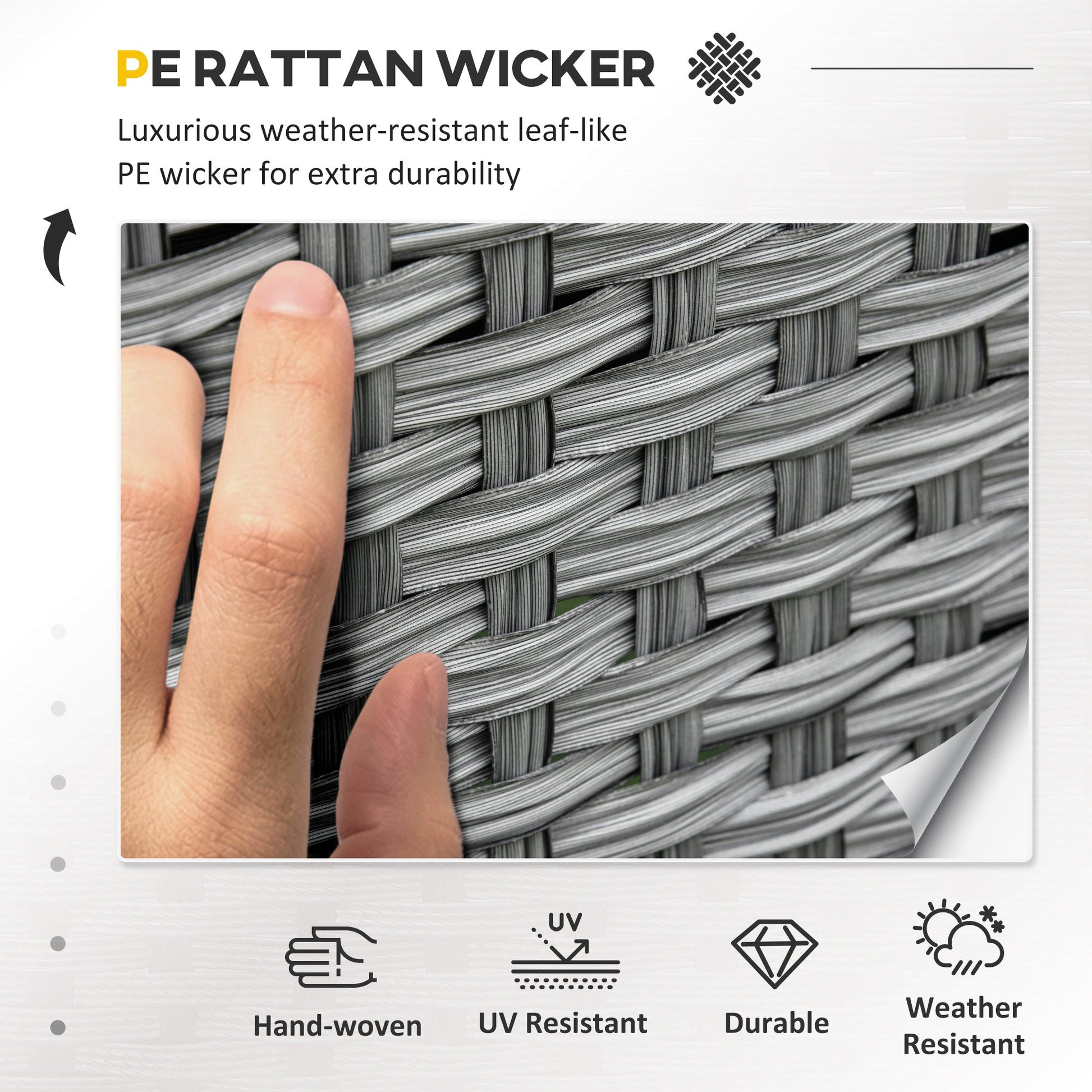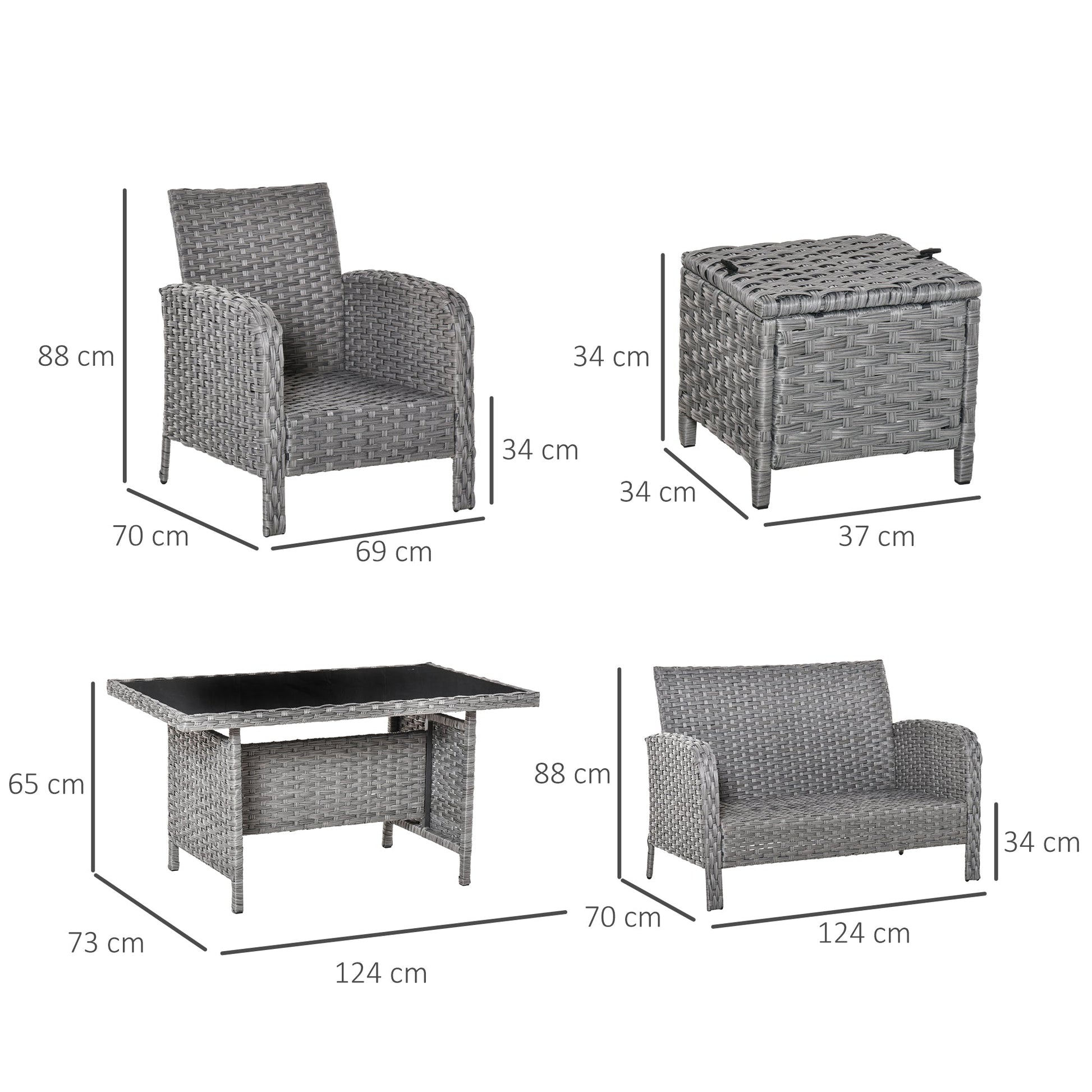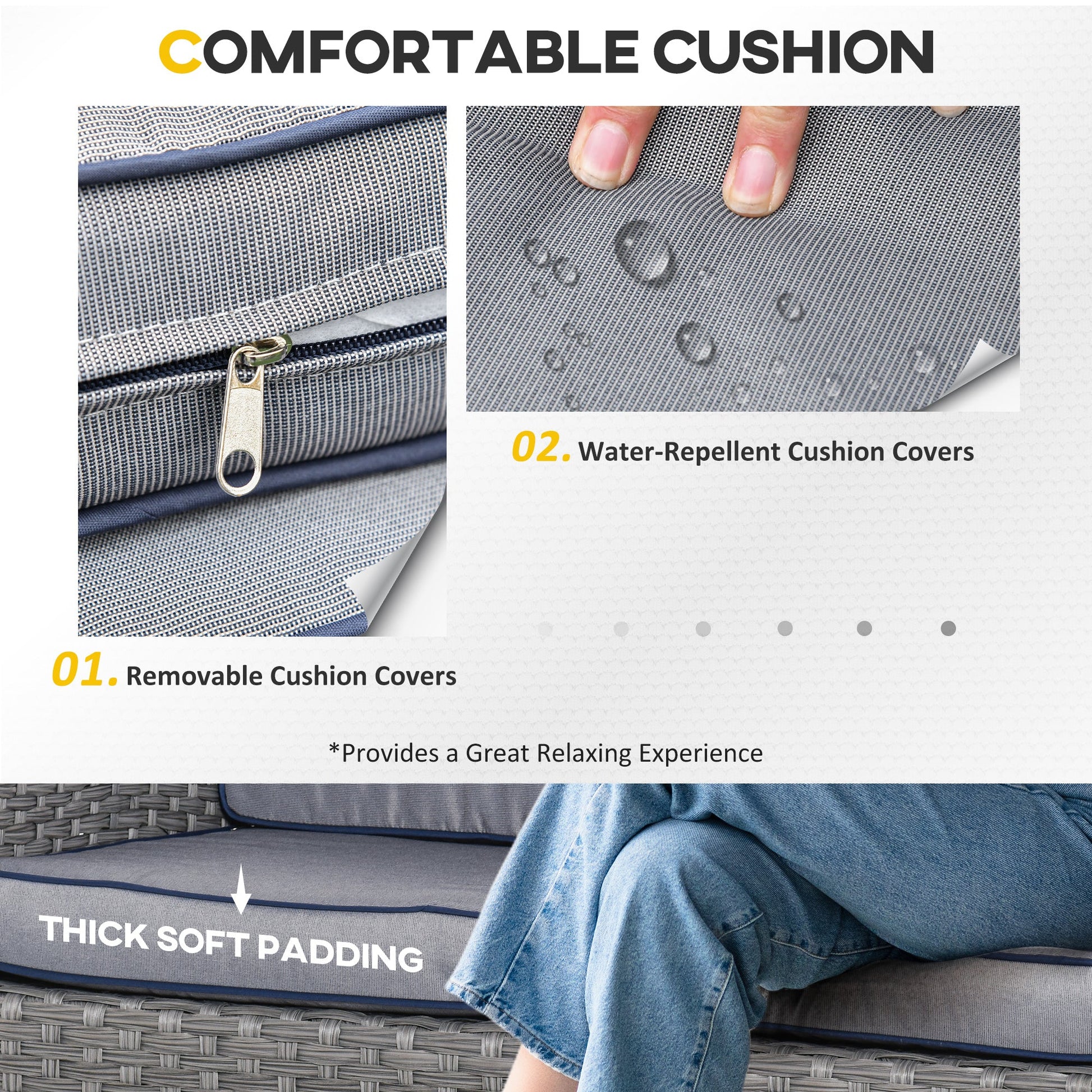 Outsunny 6 Pieces Rattan Garden Furniture Set, 6 Seater Garden Sofa Set with Glass Top Dining Table, Loveseat, 2 Armchairs and Ottomans, Wicker Outdoor Conservatory Furniture for Patio, Grey