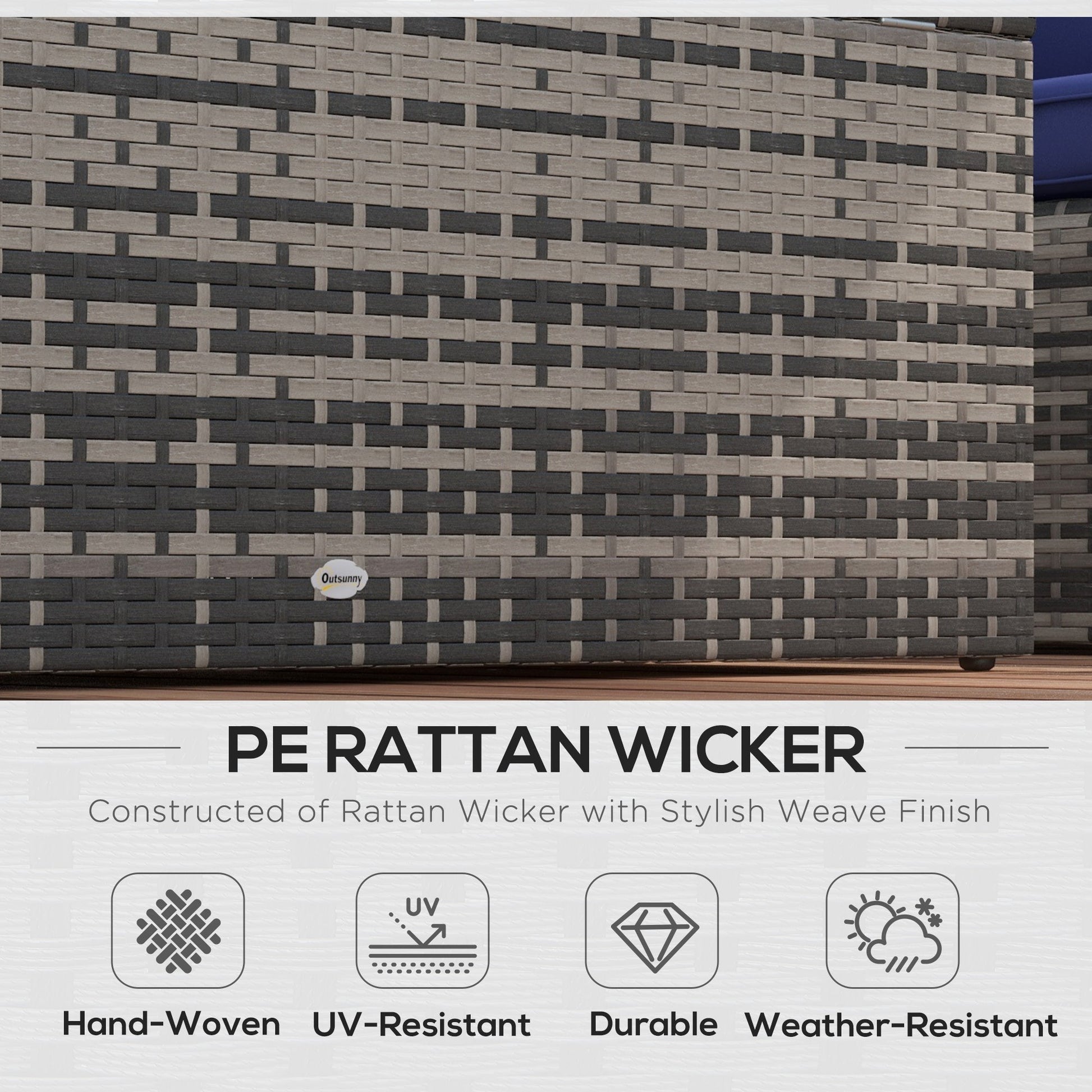 Outsunny 6 Pieces Rattan Garden Furniture Set, 7 Seater Wicker Outdoor Furniture Set with Storage Tea Table & Side Table, Sectional Garden Sofa Set with Cushions, Navy Blue