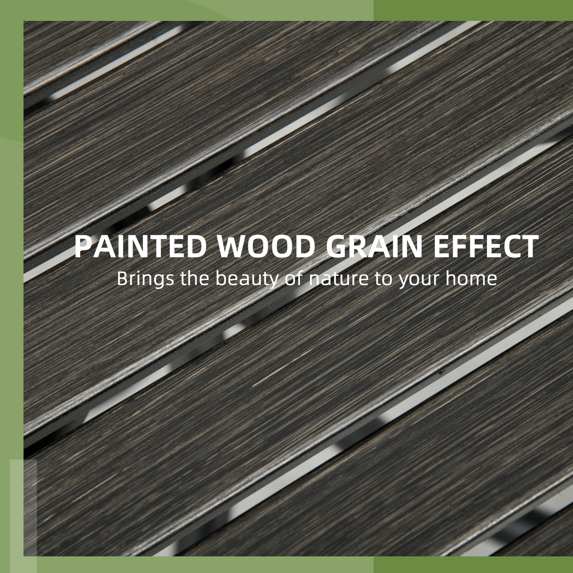 Enhance your outdoors with this Outsunny end table. Slatted tabletop is stylish and practical, preventing water building up and quick drying. The galvanised steel frame, with a powder-coated finish, means a strong and supportive core. This round garden table is suitable for plenty of occasions.