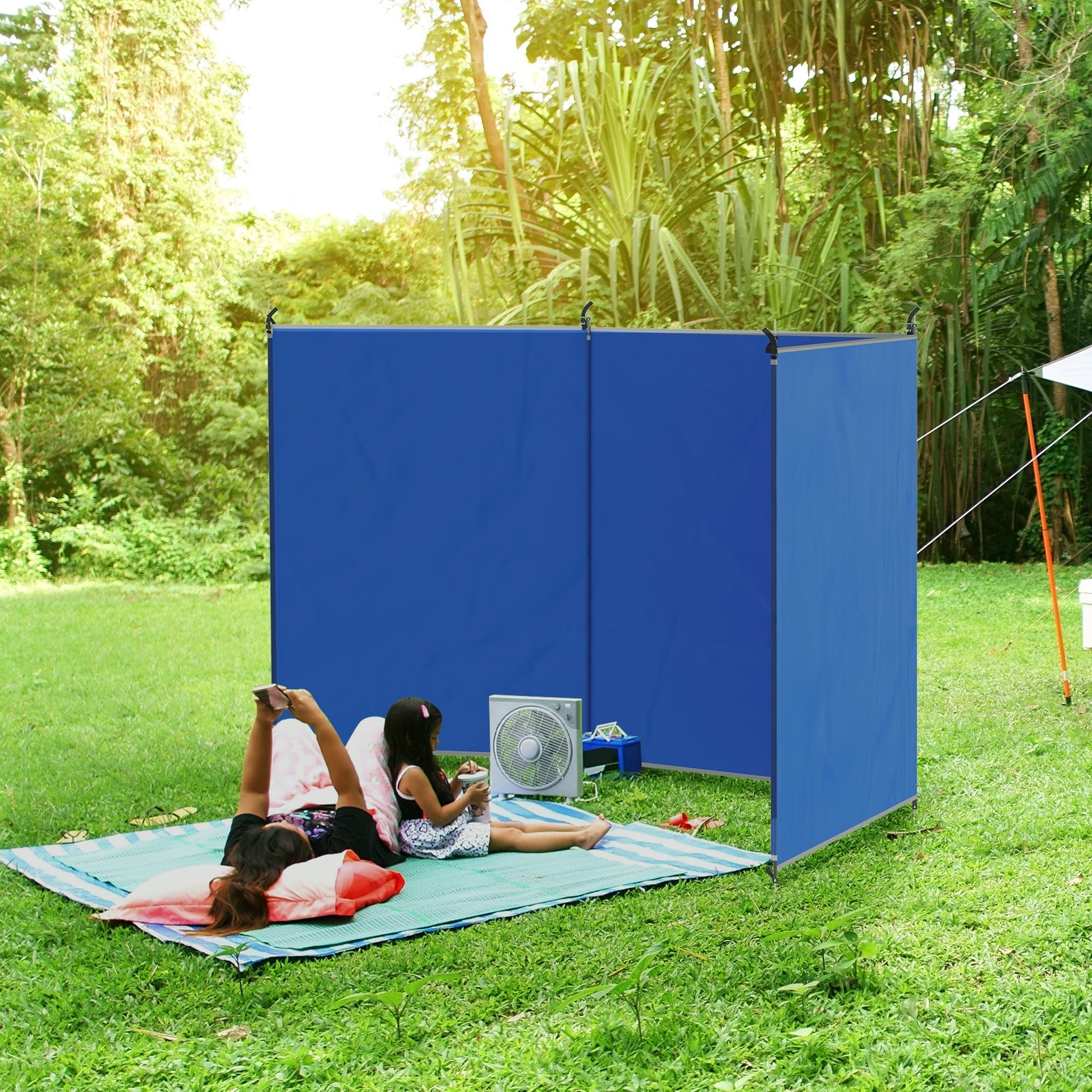 An essential accessory for practically any outdoor break this Outsunny privacy screen protects you from wind, sun, light rain and flying sand - as well as creating a private are when needed. The 4.5m x 1.5m size is large and covers an expanse area - great for when you're at the beach or camping - or even in your garden. The fabric protects against light weather annoying you, the steel poles hold the structure up - dig into the ground to keep canopy standing in place.