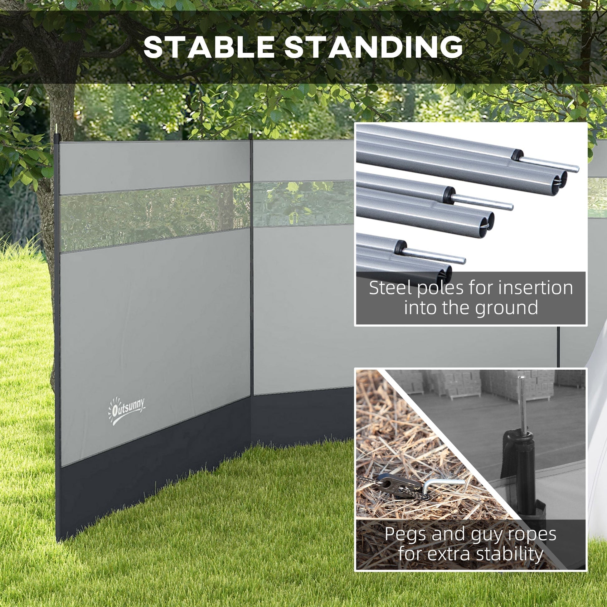 Outsunny Camping Windbreaker with Clear Windows, Carry Bag and Steel Poles, for Beach Caravan Campervan, 440 x 140cm, Grey