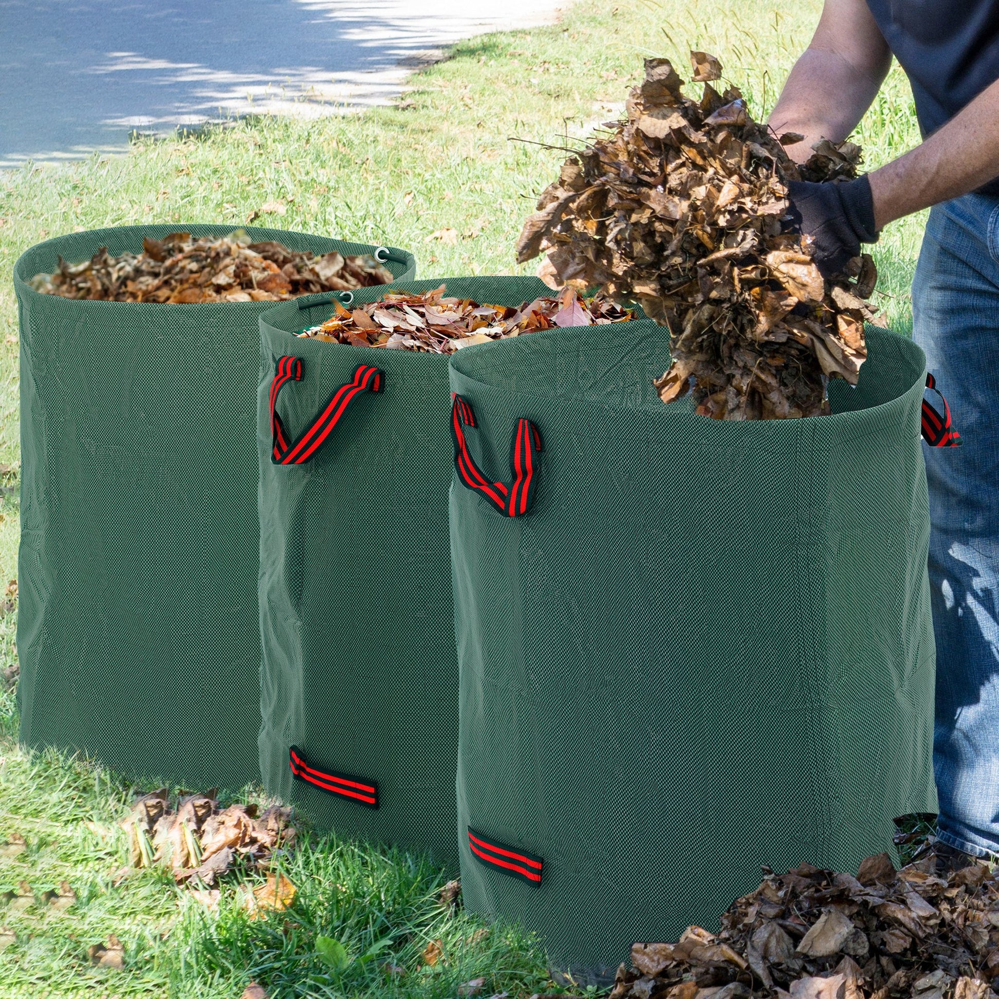Outsunny Garden Waste Bags, 300L x 3 Heavy Duty Garden Bags, Foldable and Reusable Waste Sacks with Handles for Loading Leaf, Trash, Debris, Green