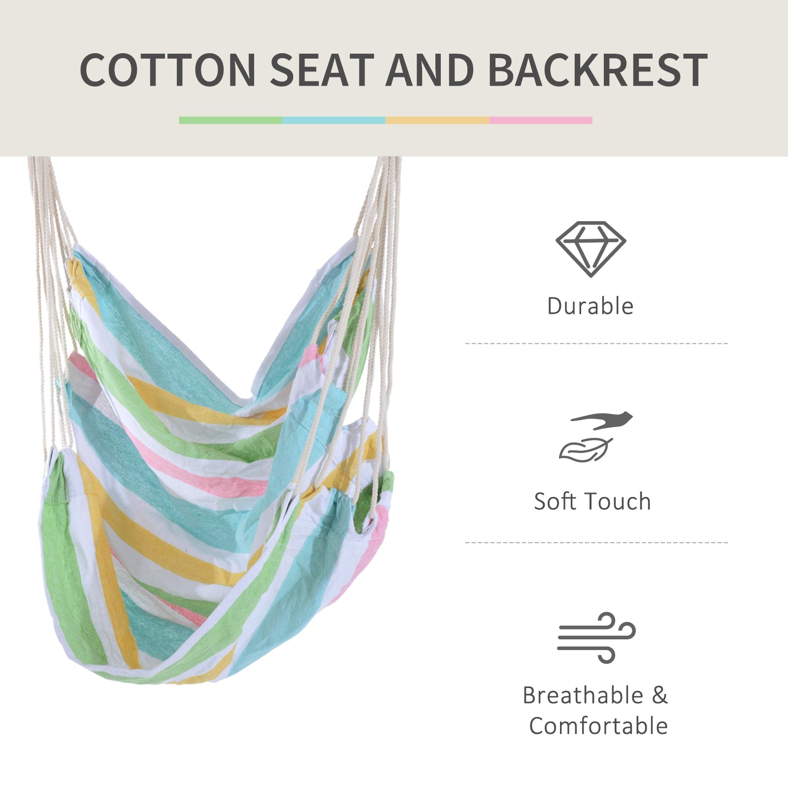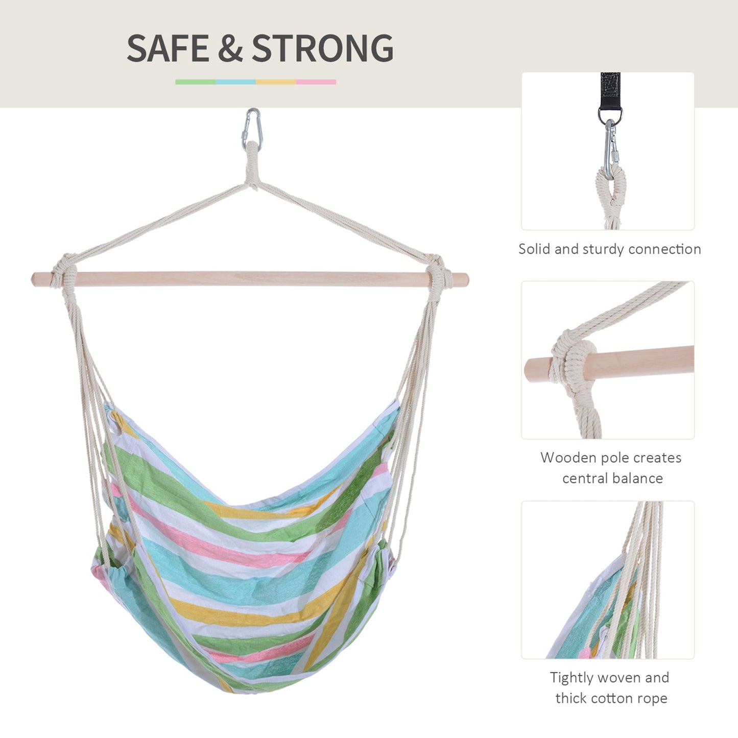 Outsunny Outdoor Hanging Rope Chair with Cotton Rope, Garden Hammock Chair with Wooden Support Bar Cotton Cloth, Portable Garden Chair for Patio & Tree, Green
