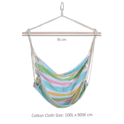 Sit back, relax and enjoy stylish outdoor lounging with the Outsunny's hanging hammock chair! Made from the durable, breathable cotton material, it will offer you years of enjoyment. With wood stretcher thorough the swings chair to keep the chair stable! Relax outside and enjoy the fresh air with our garden swing hammock!