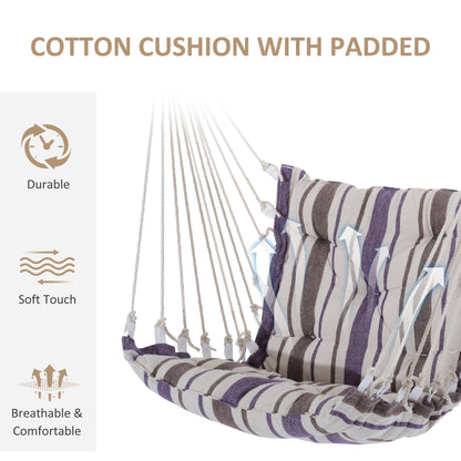 Outsunny Outdoor Hanging Rope Chair with Soft Padded Seat & Backrest, Garden Hammock Chair with Wooden Support Bar Cotton Cloth, Portable Garden Chair for Patio & Tree, Brown