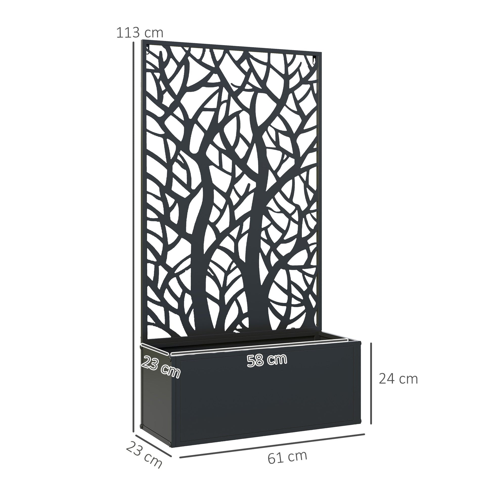Outsunny Outdoor Metal Planter, with Back Trellis - Black